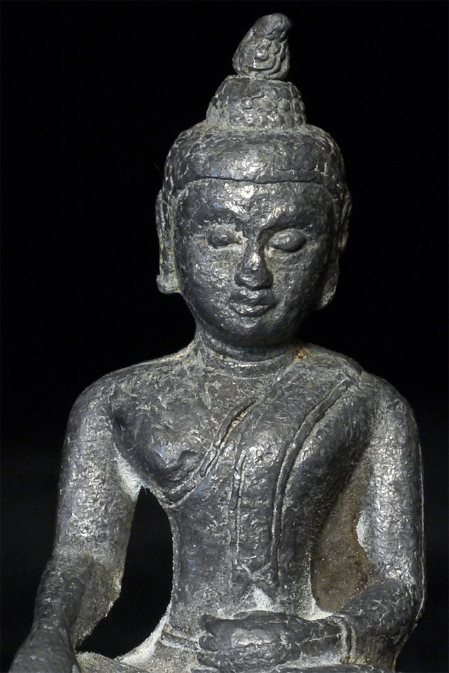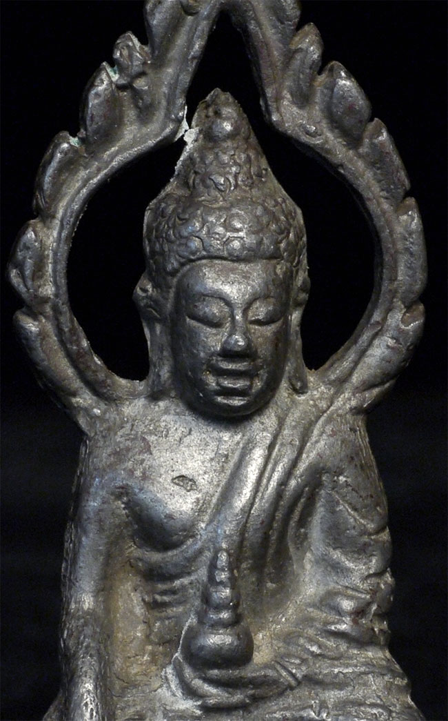 Two vintage/old lead/silver alloy Buddha figures. Taller of the two pieces is 2 3/8 inches tall. From a collector who focused on collecting older lead/silver alloy Buddha figures for many years.