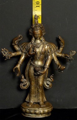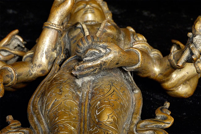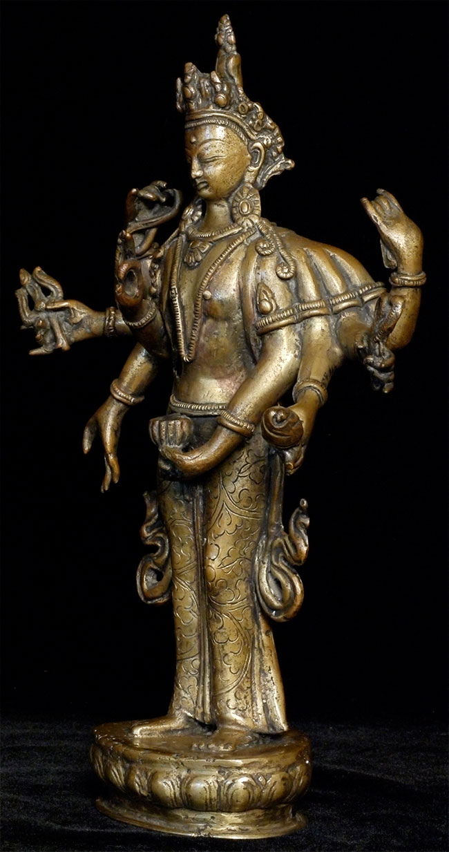Antique Nepalese Bronze Deity. Stands 9-1/2 inches tall.