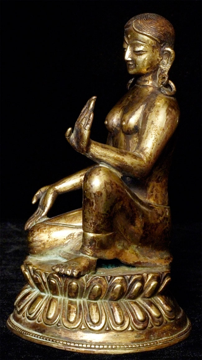 Decorative Chinese or Tibetan bronze kneeling bronze female deity.