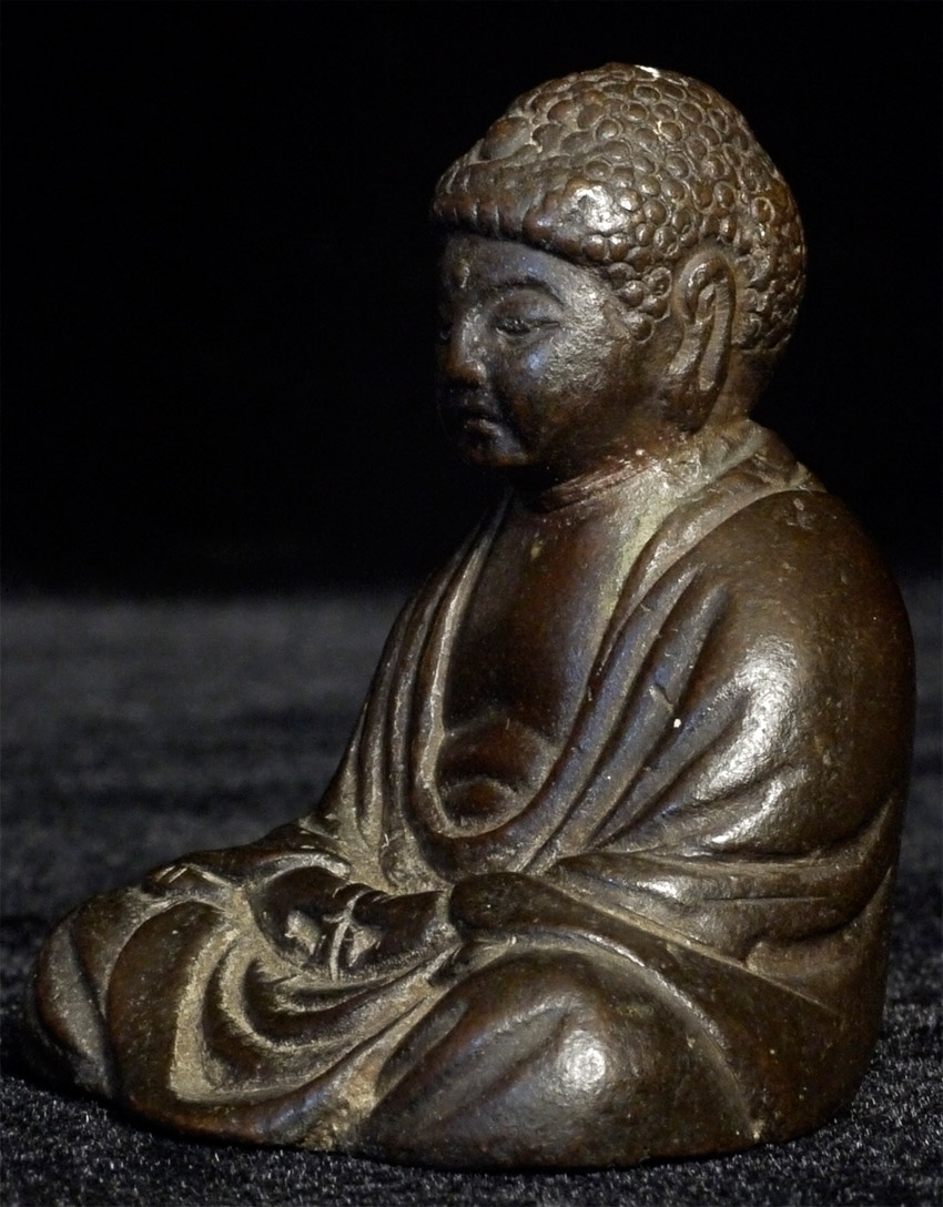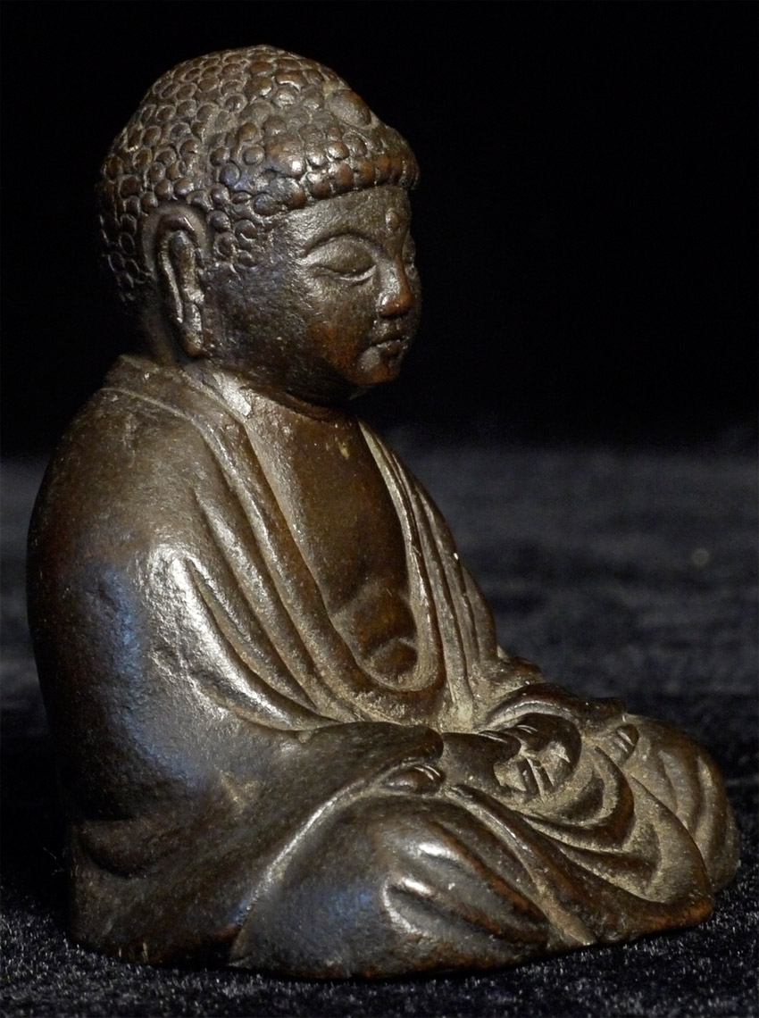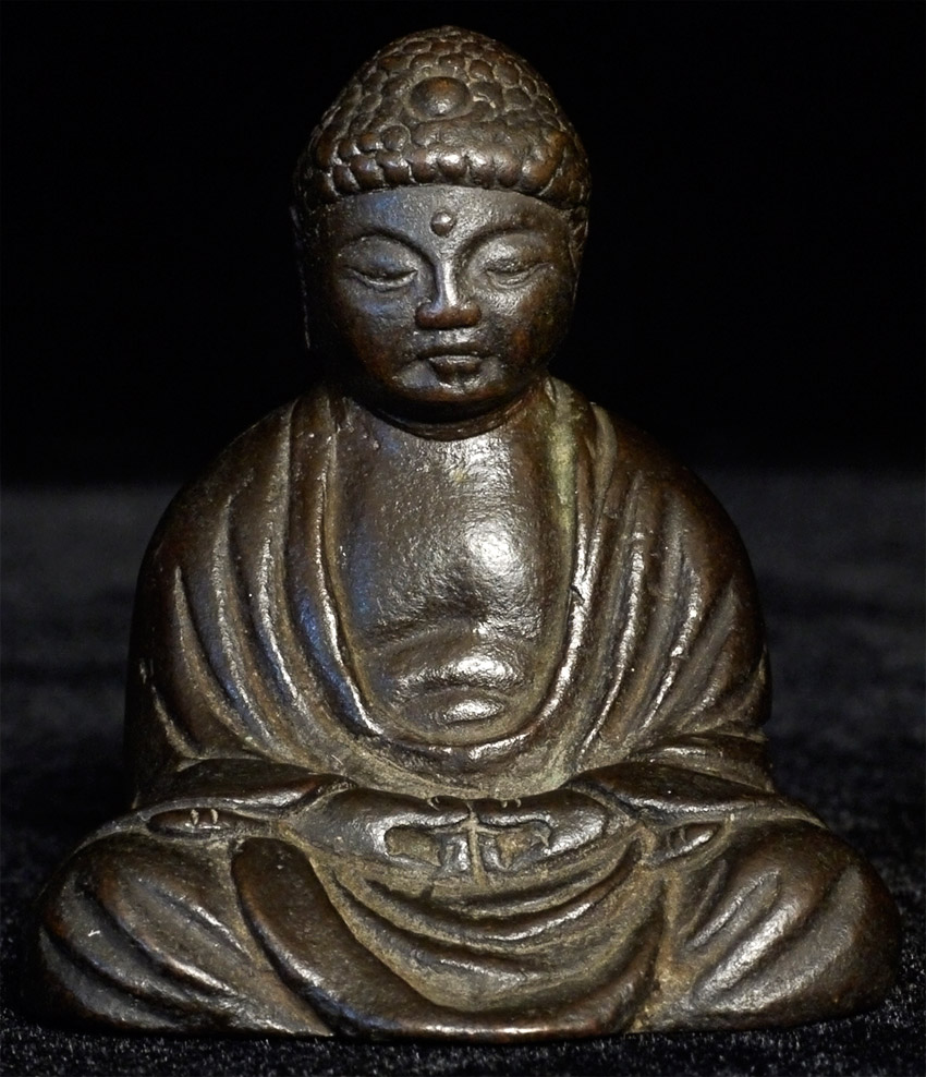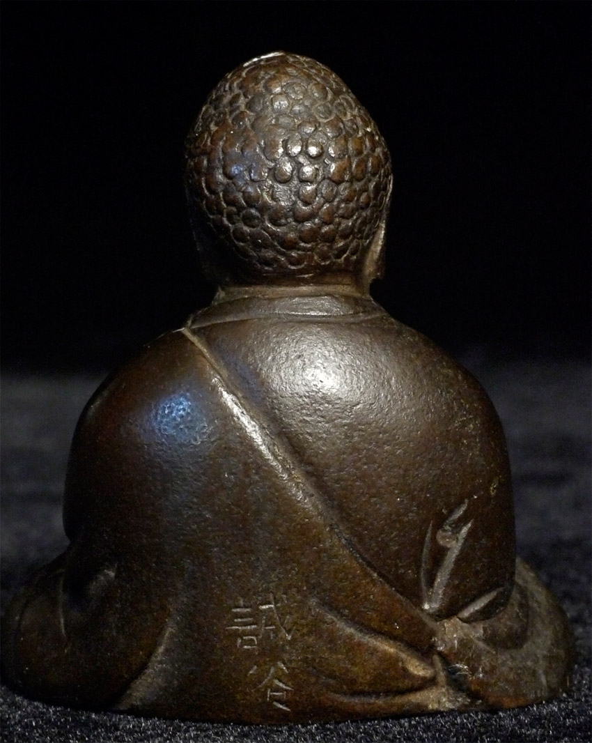 19thC Japanese bronze Buddha. Sits 1.75 inches tall, signed.