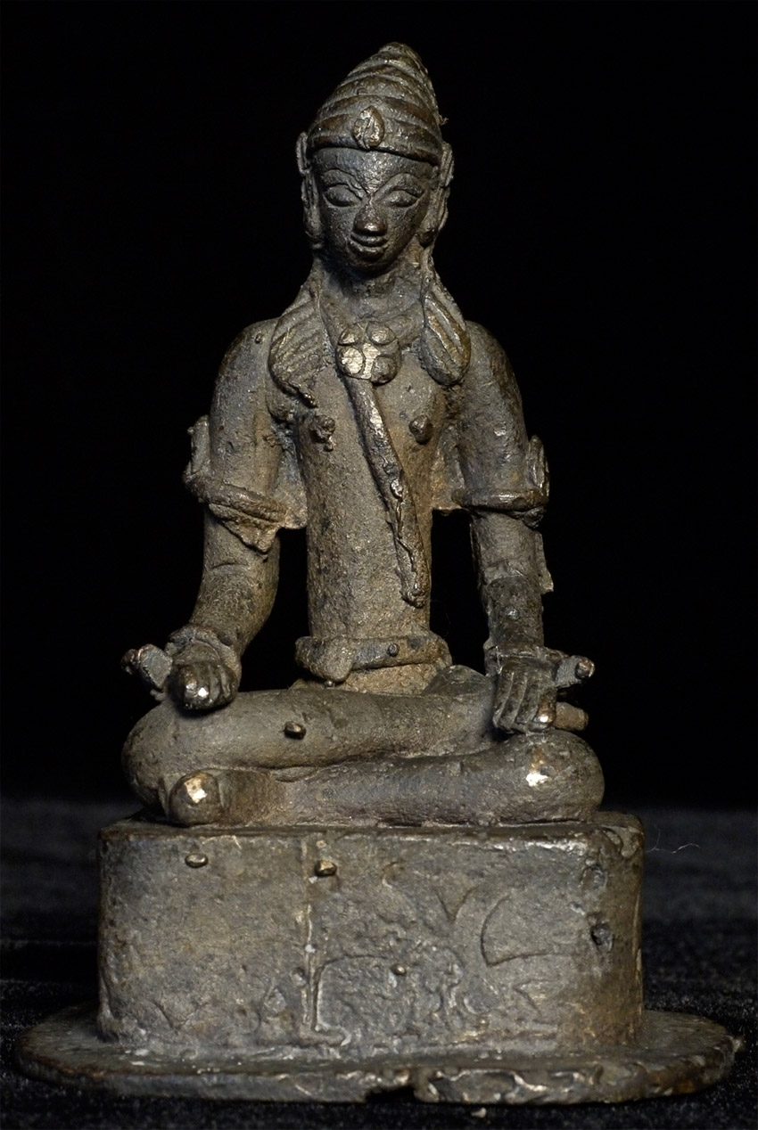 Antique Indonesian (or another island) Buddha or Buddhist figure. Some surface irregularities. This piece measures 3-3/8" tall.