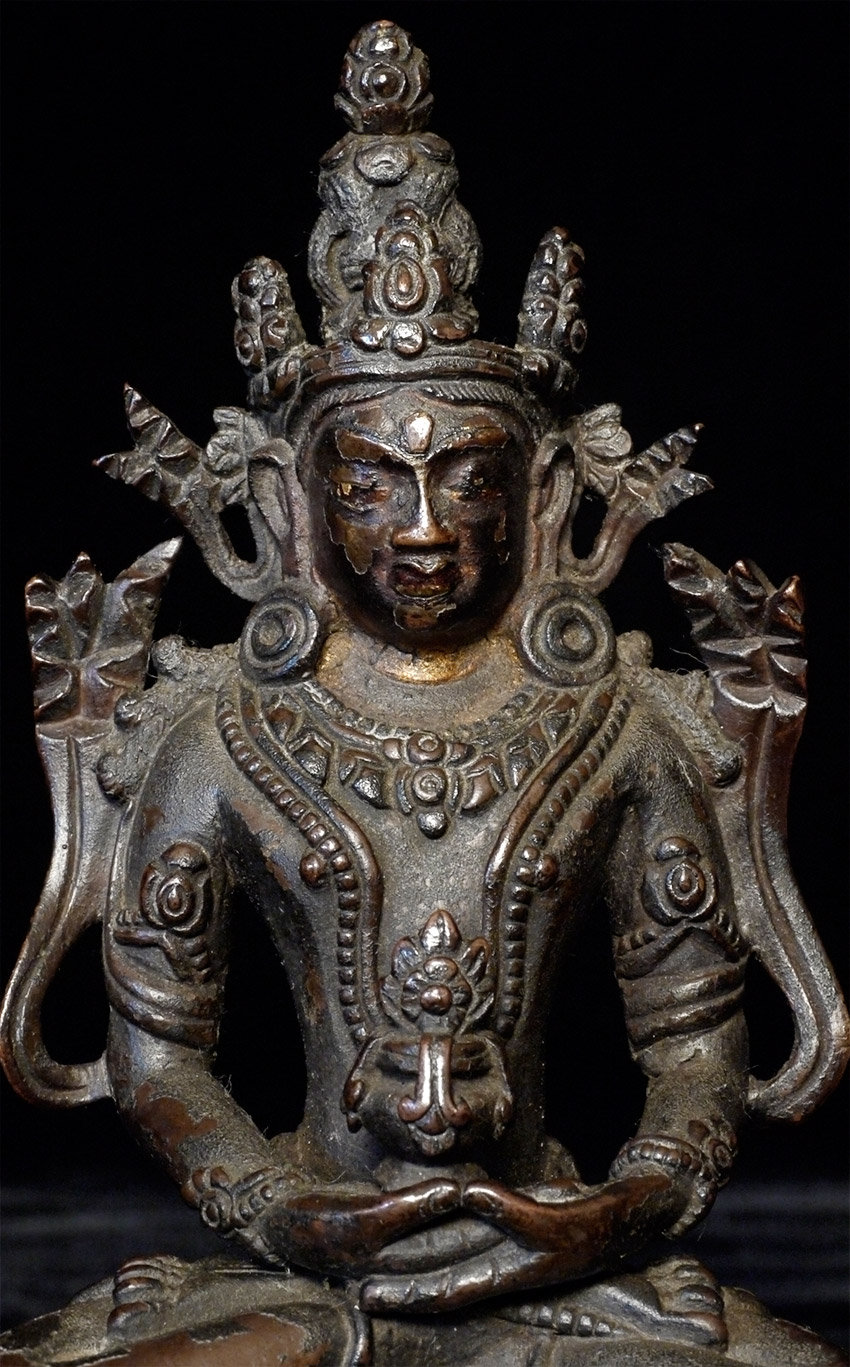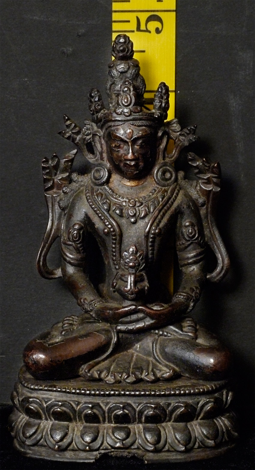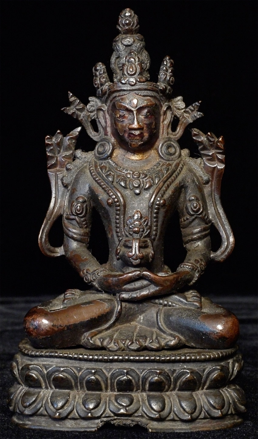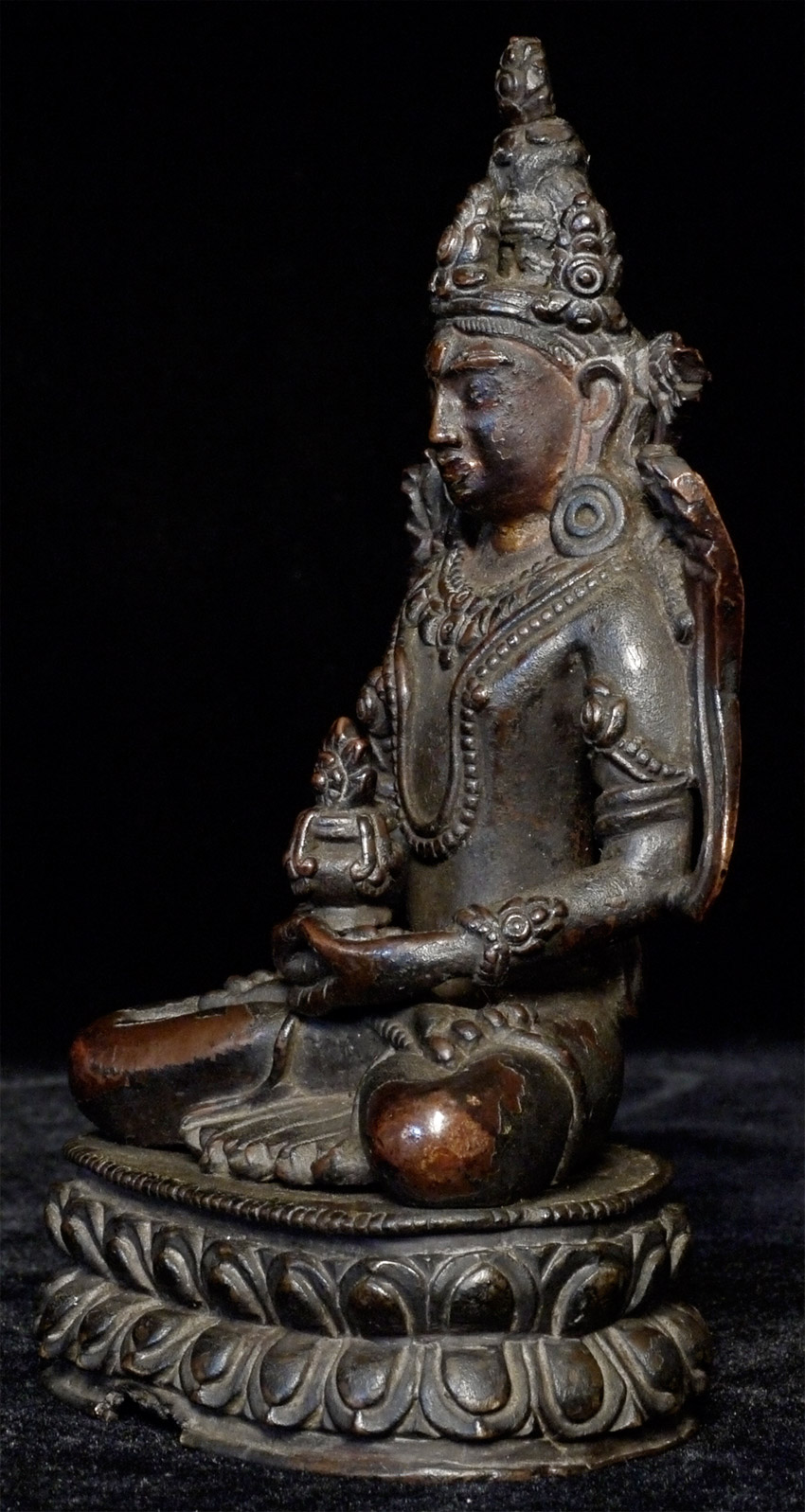 Beautiful 16/17thC example of Bodhisattva of long life, Amateyus, from Western Tibet. Very hard to find in this quality, condition, and overall feel. Condition as seen http://www.thebuddhagallery.com/collection.phpin the photos. Sits peacefully at 4.75 inches tall.