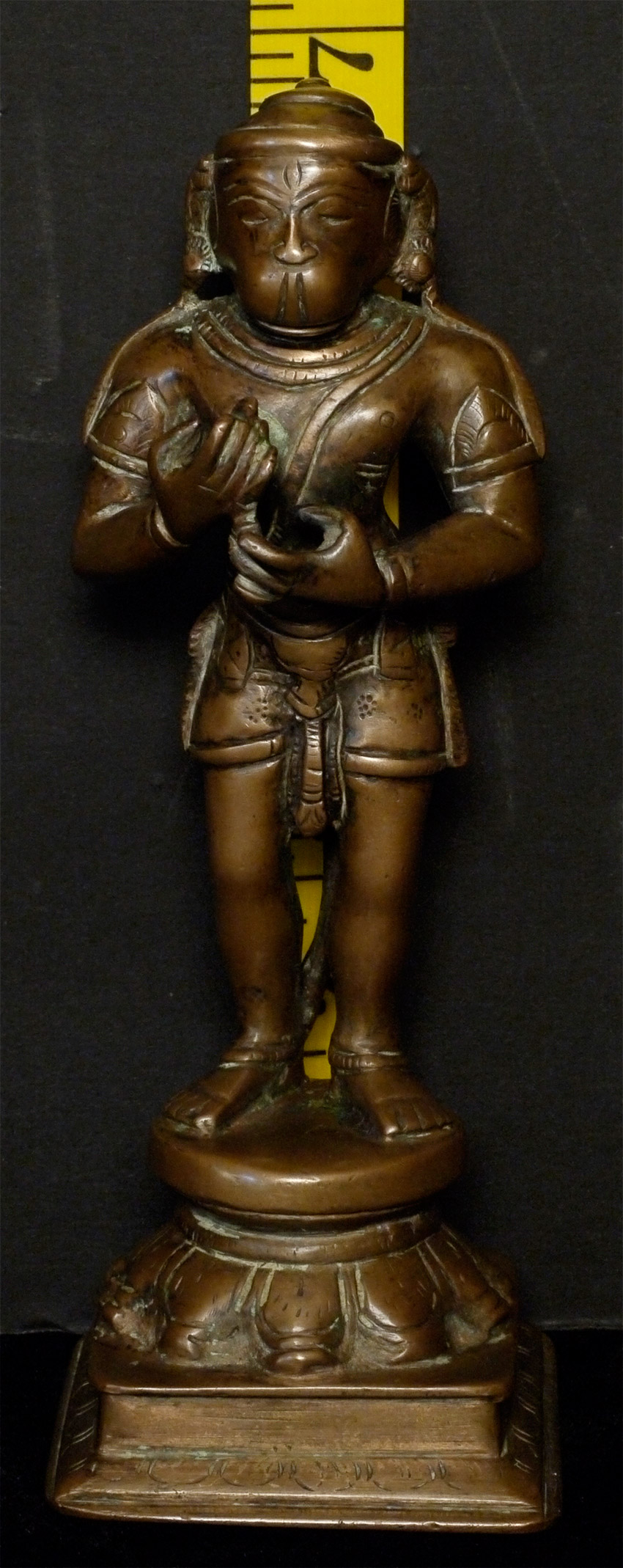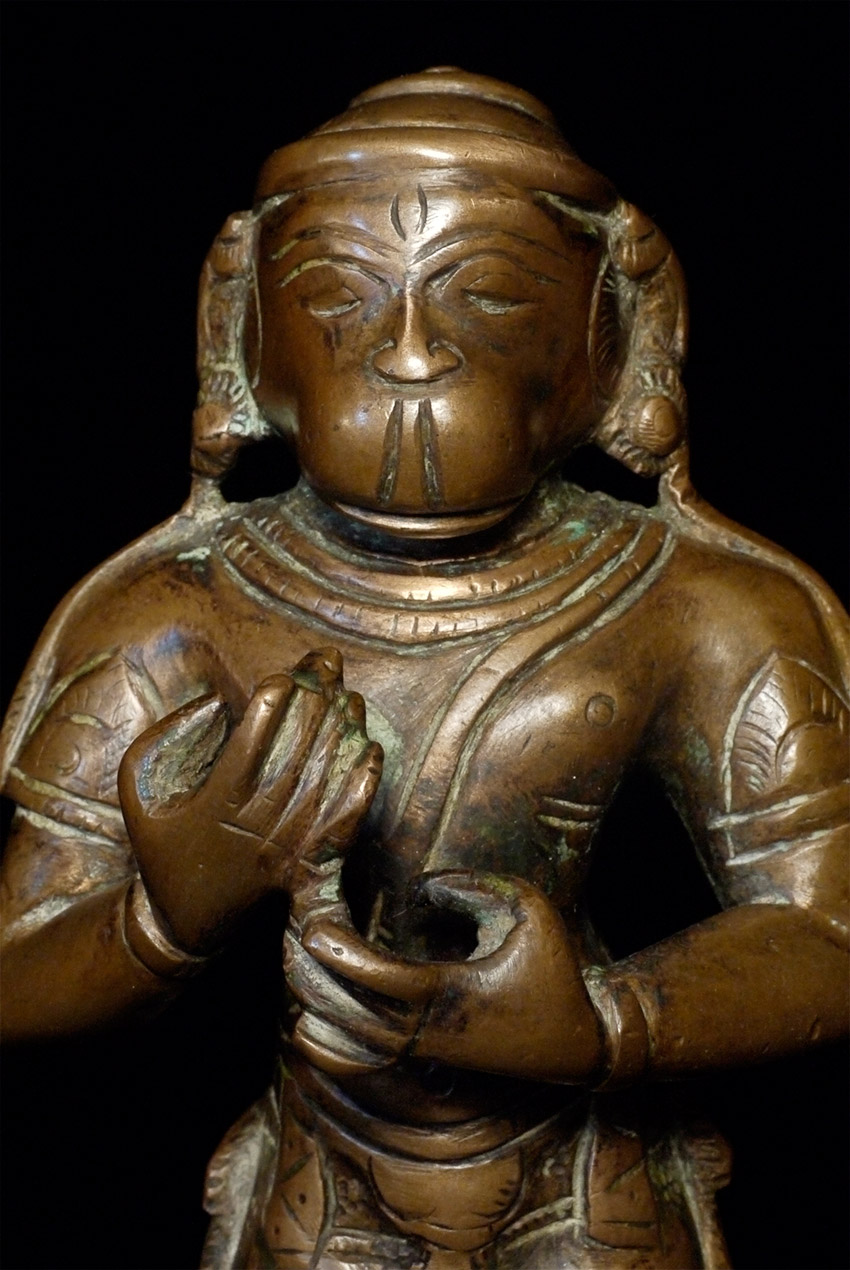 A very handsome early 20th C bronze Hanuman. Stands 7 Inches tall.