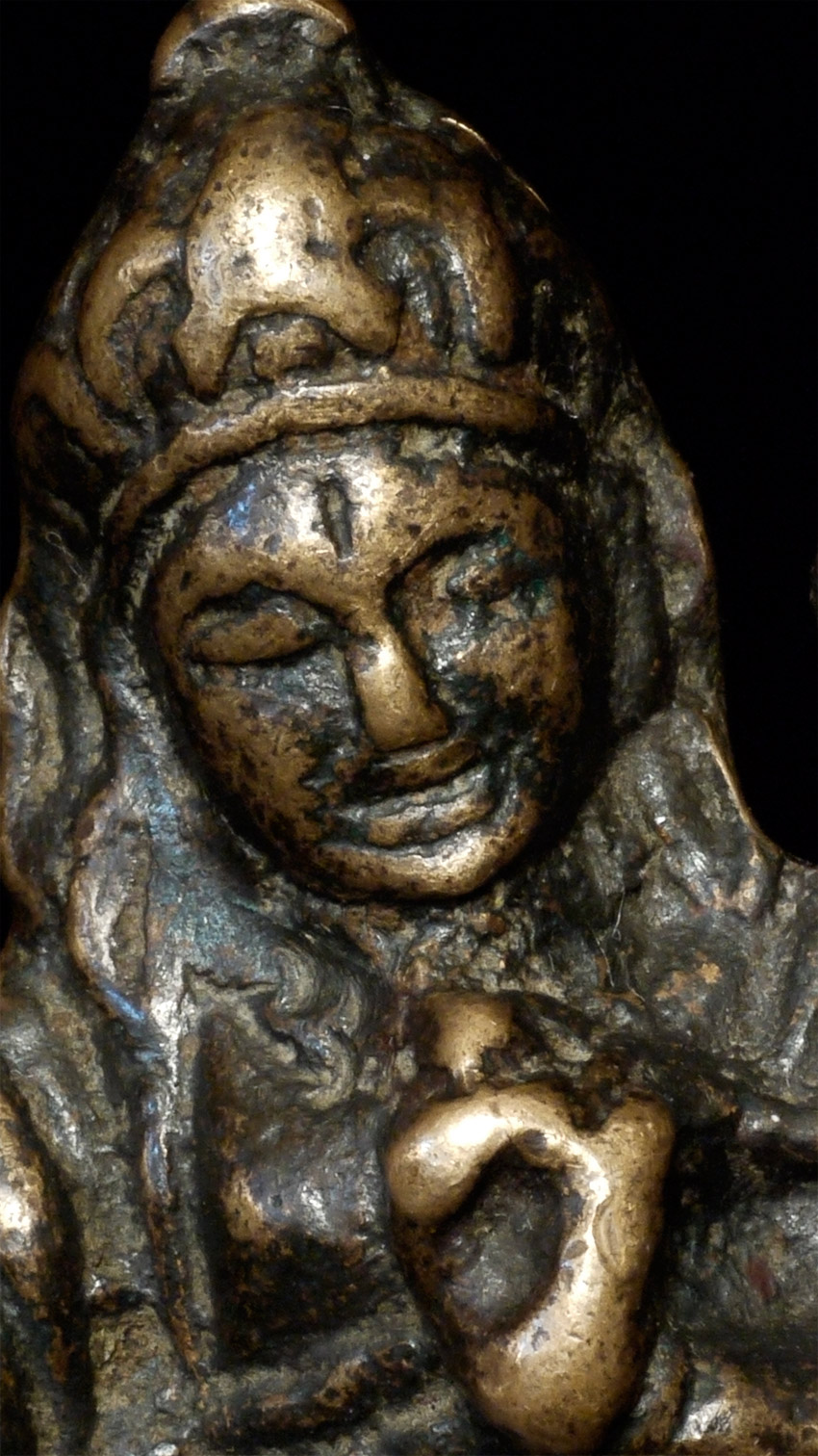 Early solid cast Himalayn bronze. Sits. 2 inches tall.