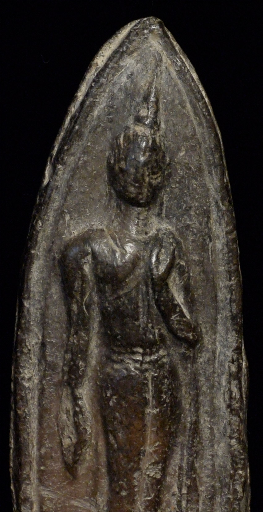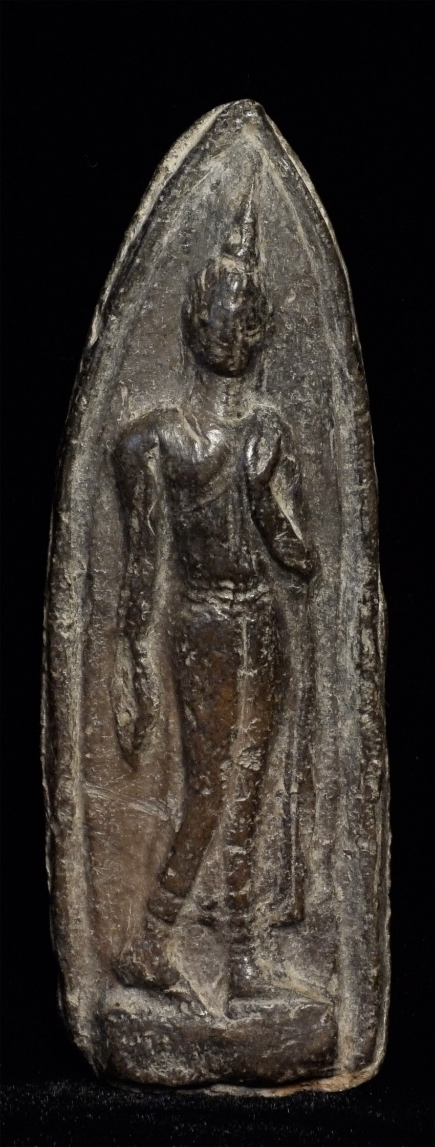 Antique Thai Walking Buddha Clay Amulet. Stands 3 inches tall. Good age.