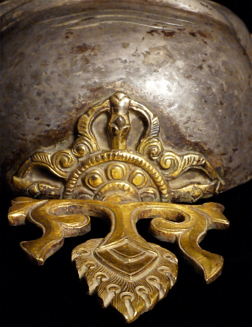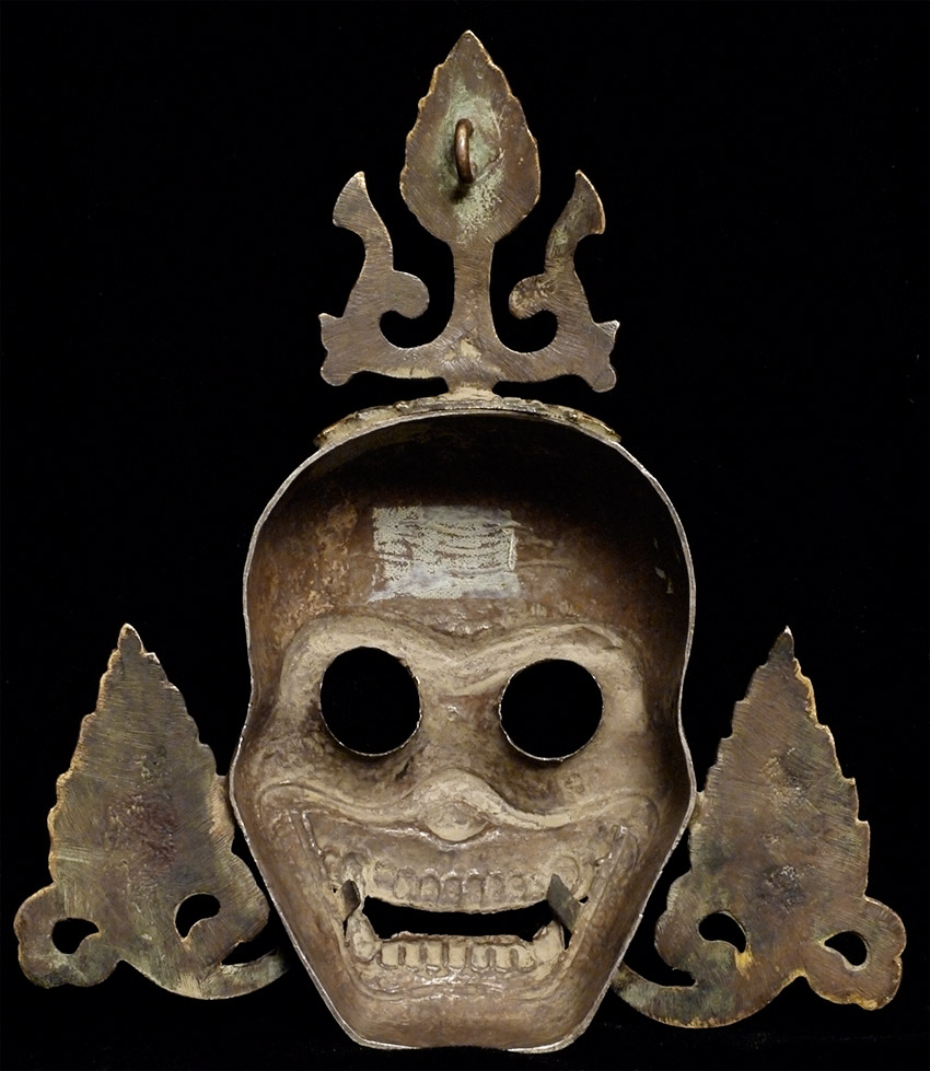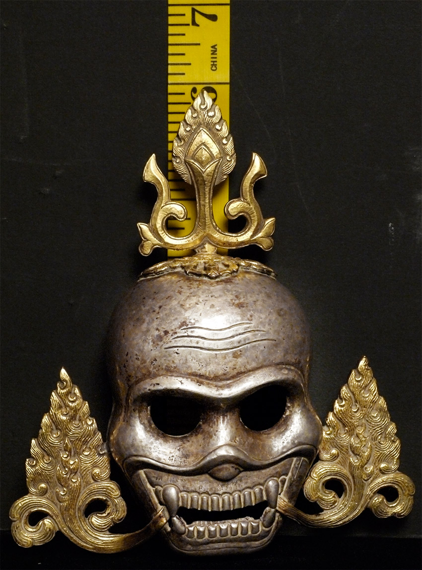 Acquired by previous owner when he was a child from s collector who worked at U.S. Embassy in Taiwan. Actual mask is 6 inches tall not including the custom base. Mask looks to be high grade silver and to have good age. High quality gilding to parts. Far superior to the vast majority of related pieces (including antique ones selling for good money)