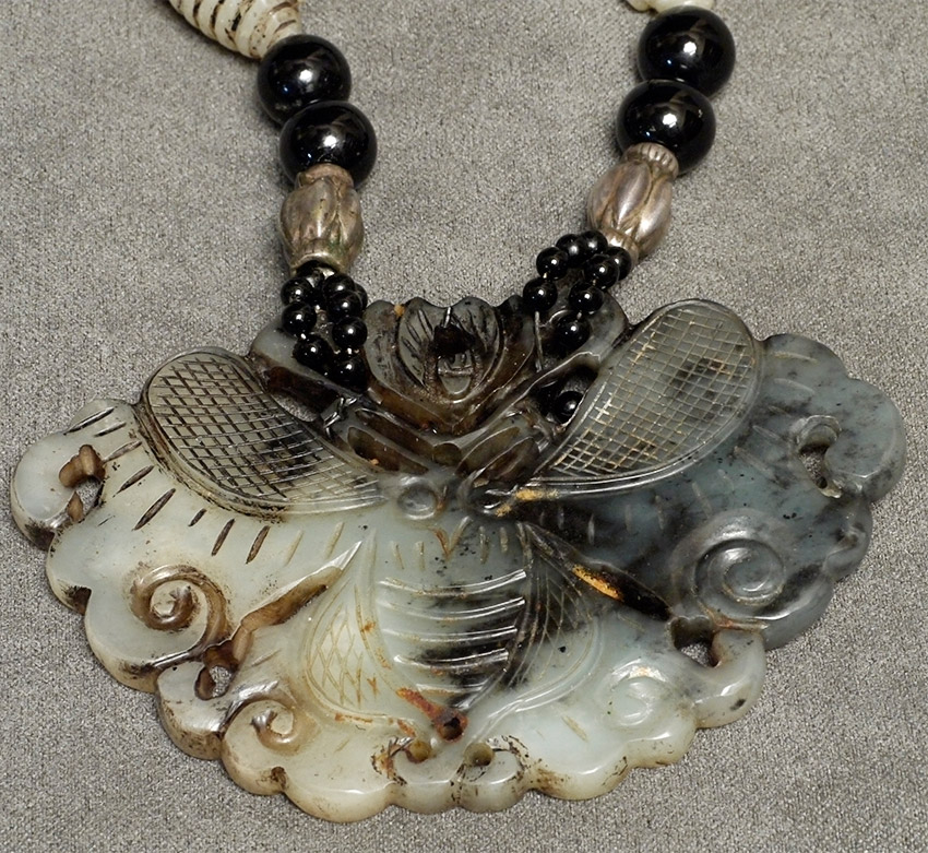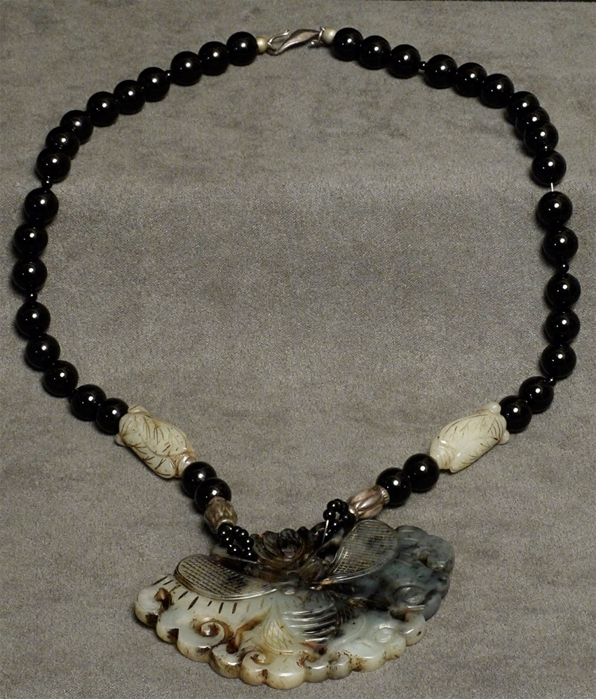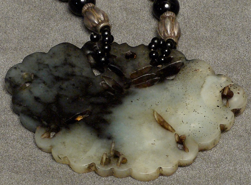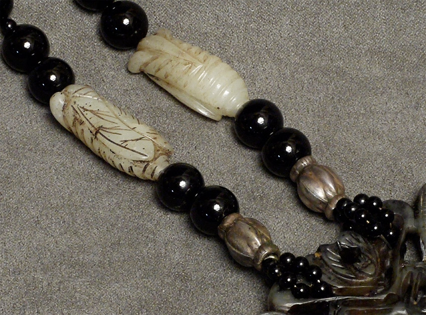 Antique necklace from great old collection. Jade, malachite beads (?), and silver. 28 inch circumference