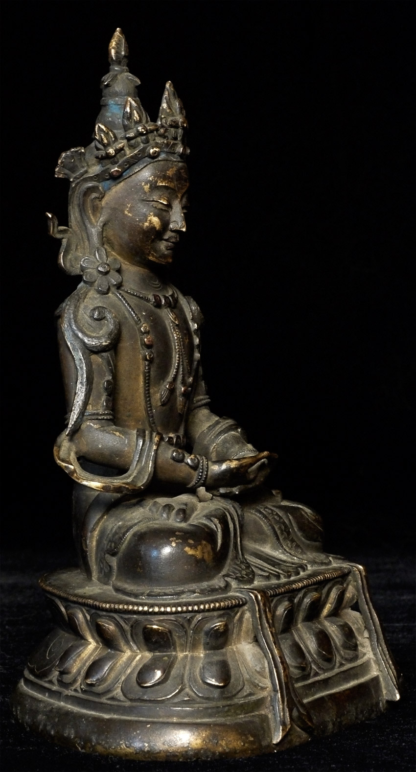 Finely cast Tibetan or Chinese bronze Bodhisattva. Sits 6.25 inches tall. Unsure of dating.
