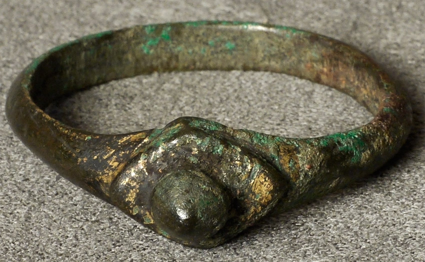Ancient bronze ring from a giant bronze statue (perhaps 12-15 feet tall or more) excavated in Northern Thailand in the area of Chiang Sen in the 1950s, and likely 500+ years old. Size is 1.5 inches diameter. I have never seen another like it.