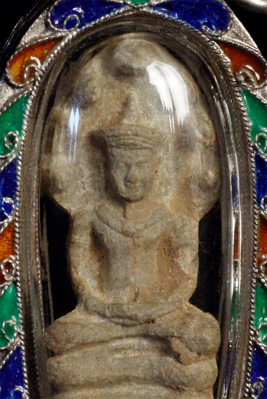 Authentic antique Thai Naga Buddha Amulet in a modern case. Likely 14-16th century. From a large old collection. Size is 1 inch tall, and the amulet (to loop) is 1.5 inches tall. A fine example of its type. Perfect for daily wearing. Many modern emulations, few authentic early ones.