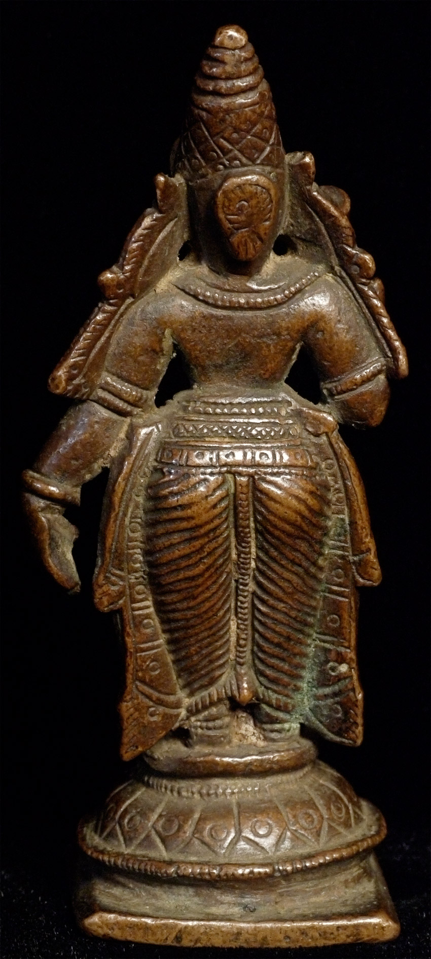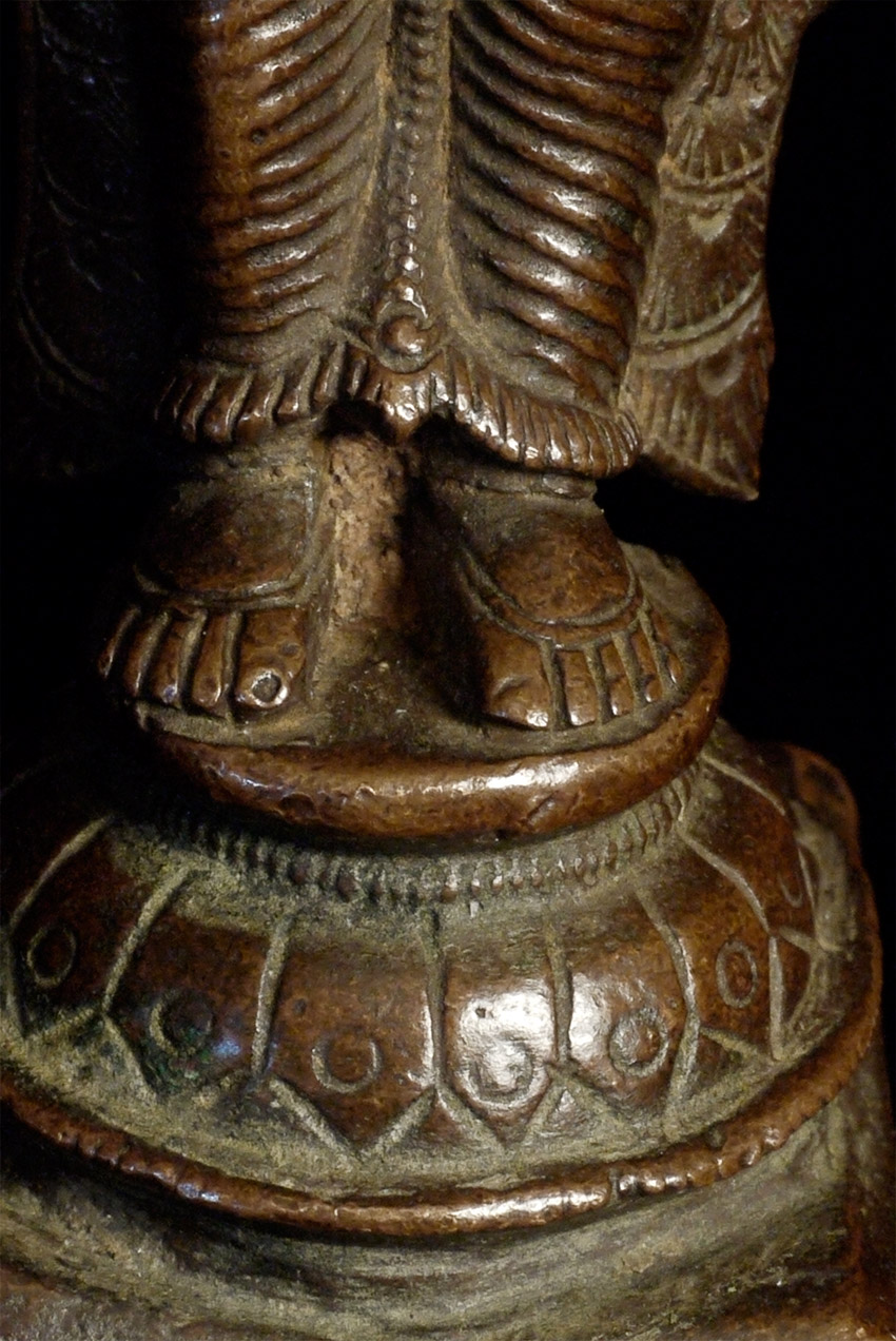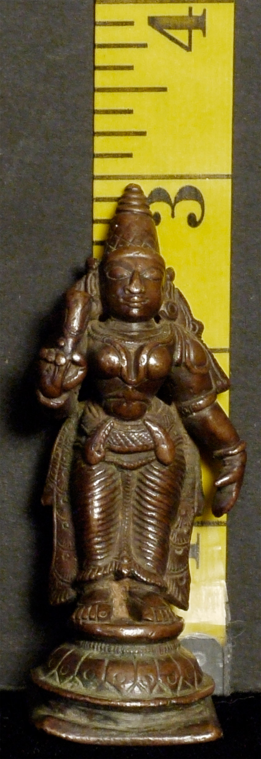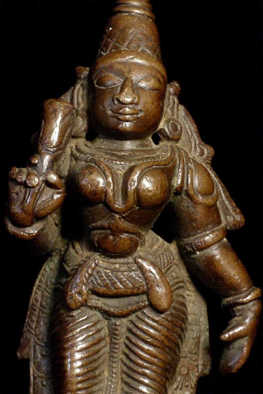 Lovely antique bronze Hindu figure. Just shy of 3 inches tall. Deeply serene and joyful expression. Far nicer than usual.