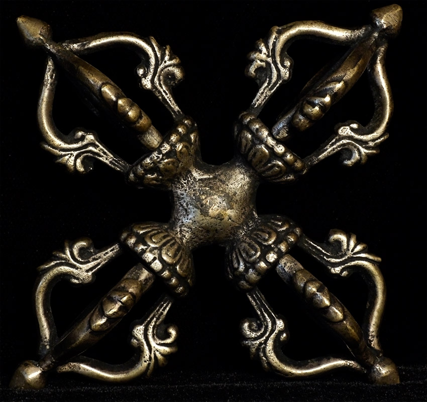 Old/antique Tibetan bronze double Dorje. 4.5 inches square
