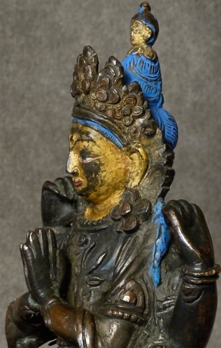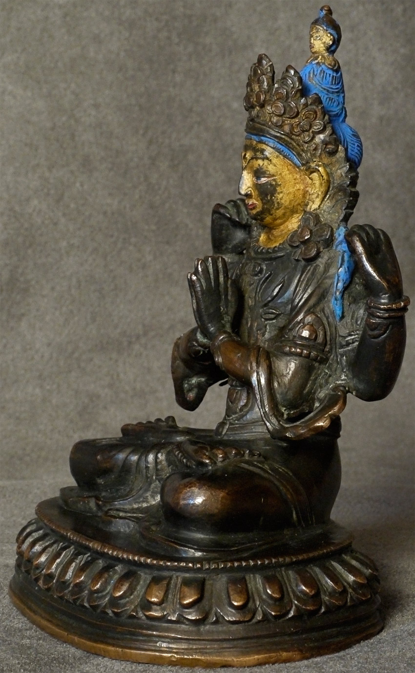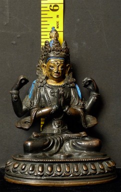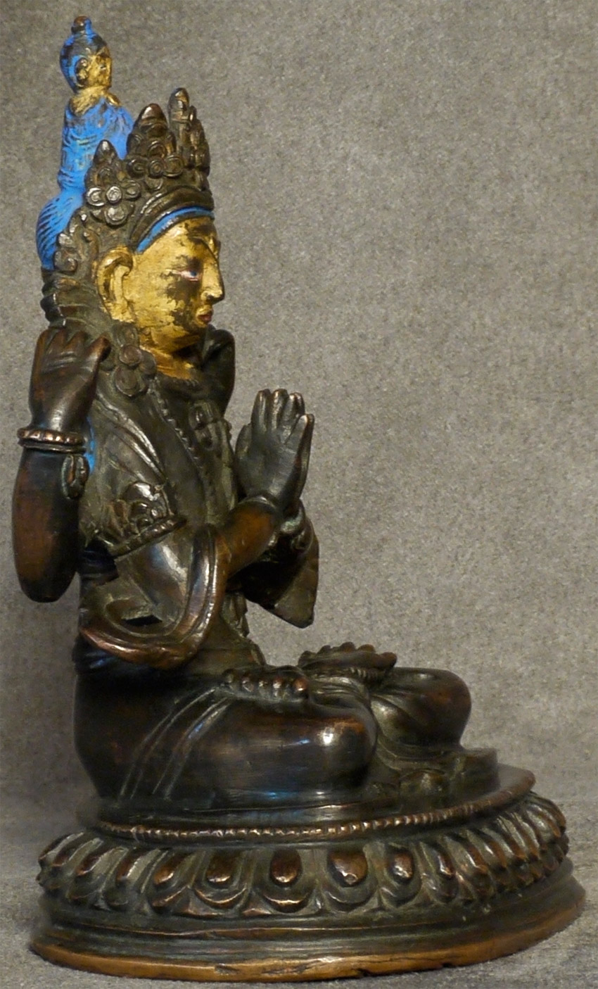 18/19thC Tibetan Bodhisattva of Compassion. Beautiful! Sits 5 1/8 inches tall. Gold gilt to the face. A true practitioner's piece.