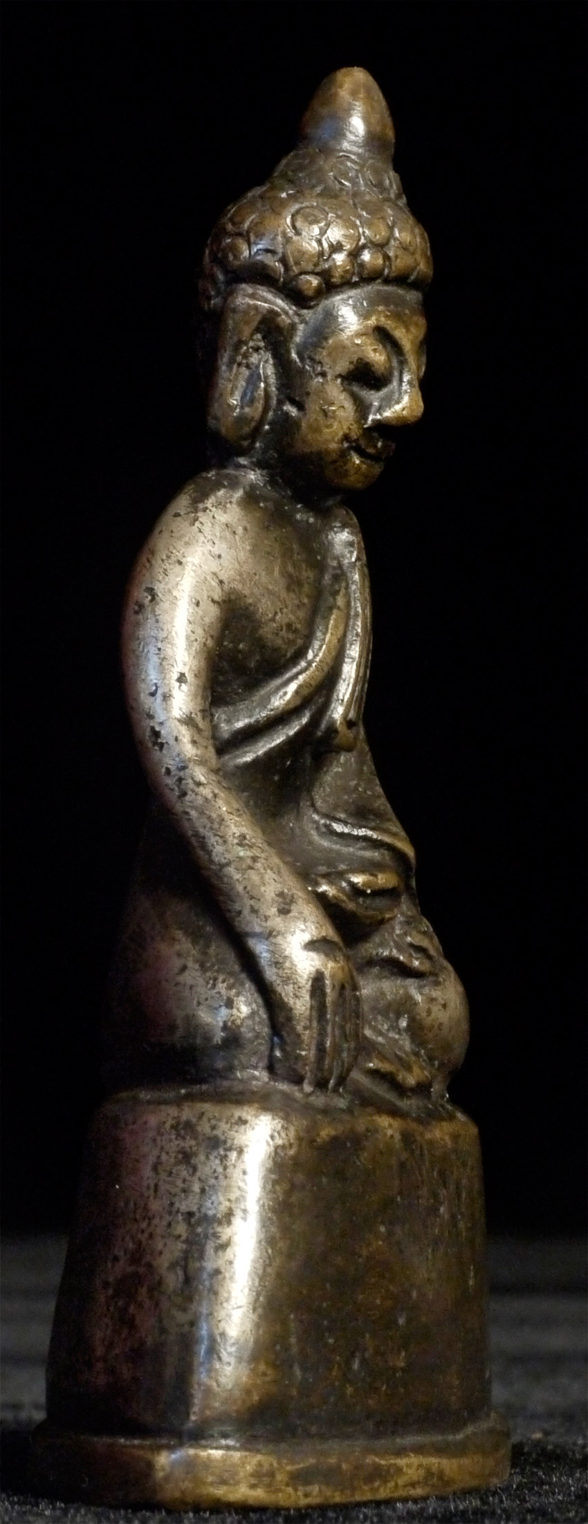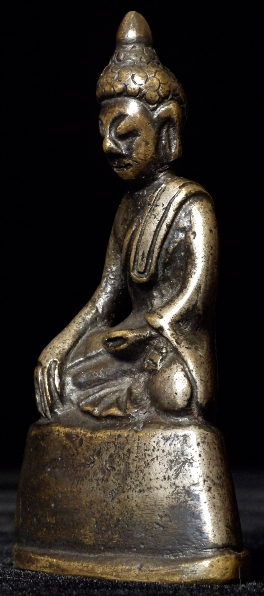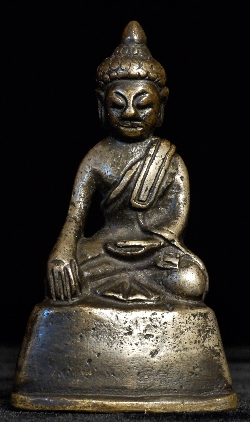 Vintage/antique Northern Laos/Southern China Buddha. This type has influences from both China and Southeast Asia, and comes from the area where Yunnan and Laos and Thailand all meet. Sits 3 inches tall.