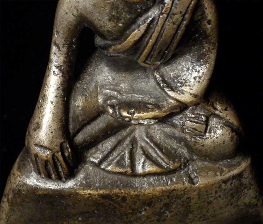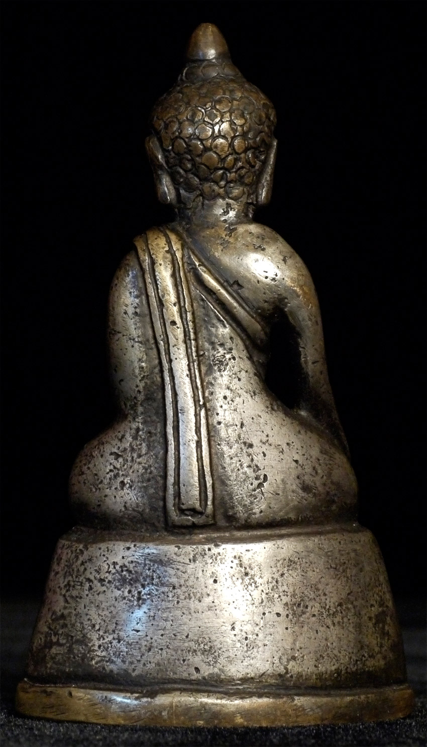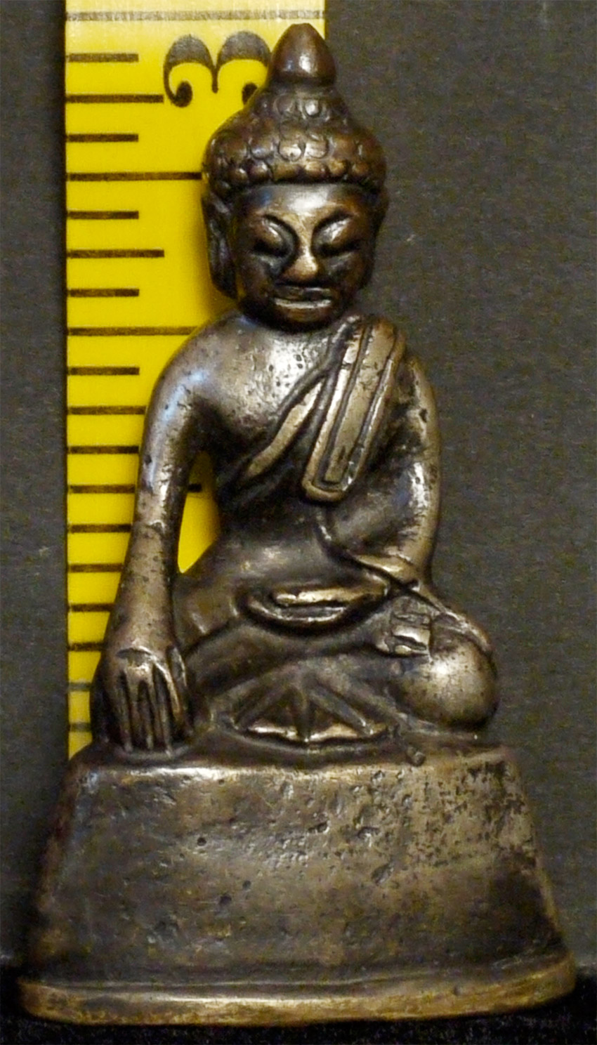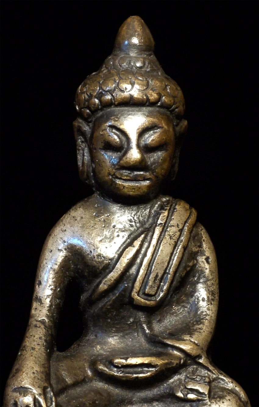 Vintage/antique Northern Laos/Southern China Buddha. This type has influences from both China and Southeast Asia, and comes from the area where Yunnan and Laos and Thailand all meet. Sits 3 inches tall.