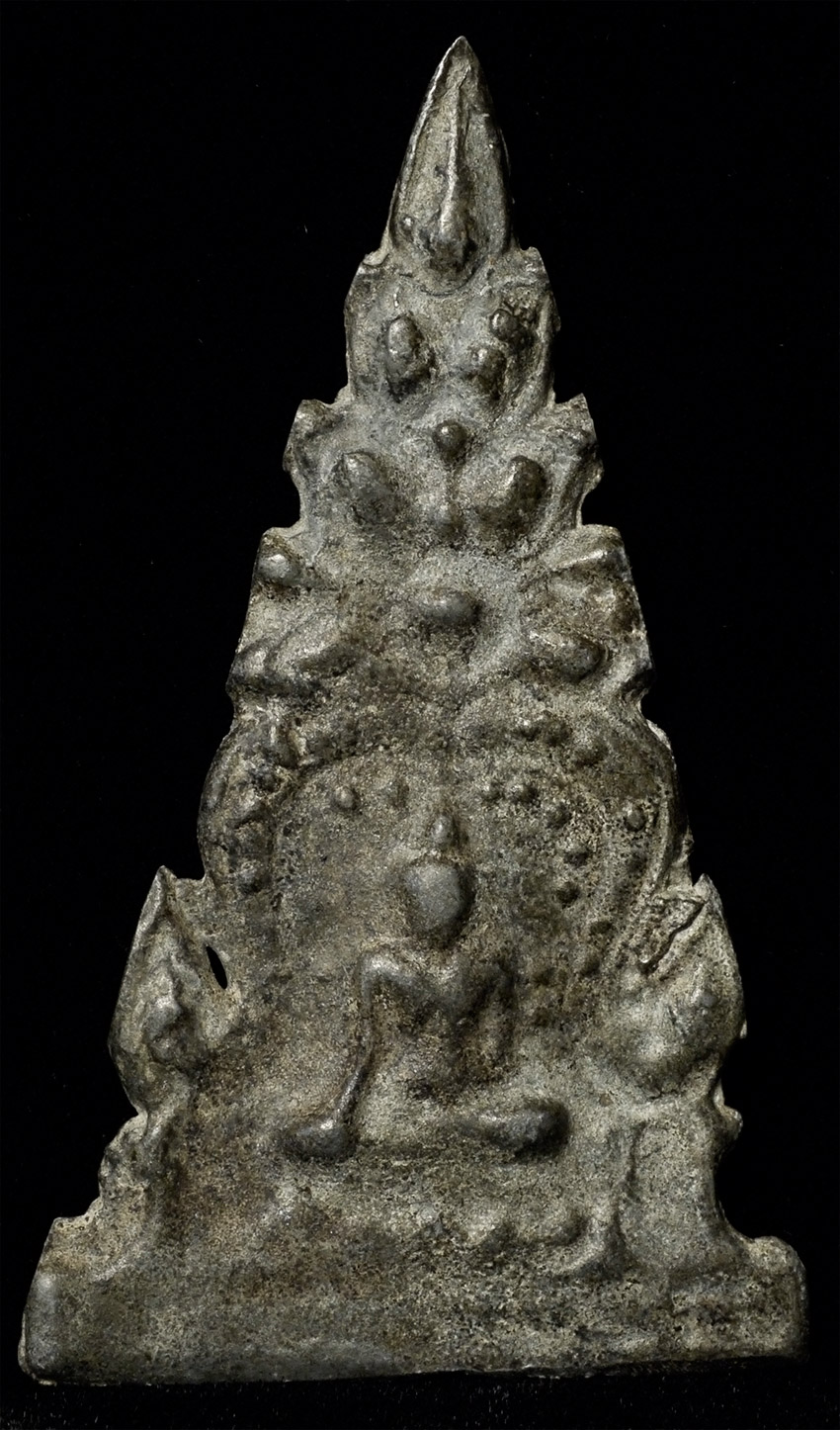 Thai bronze plaque or amulet from an old collection of SE Asian amulets and small Buddhist objects collected in the 1970's and 80's. Probably 16/17thC. Stands2 7/8 inches tall