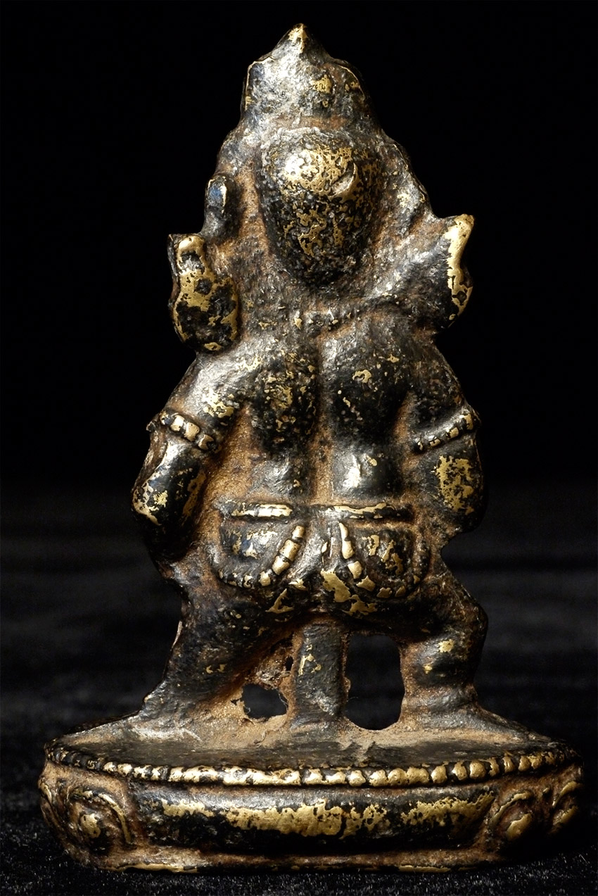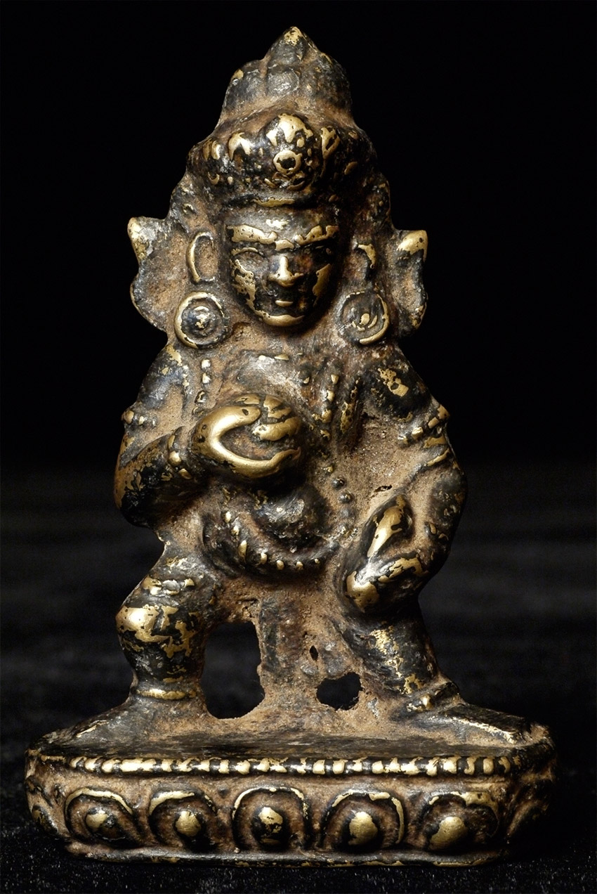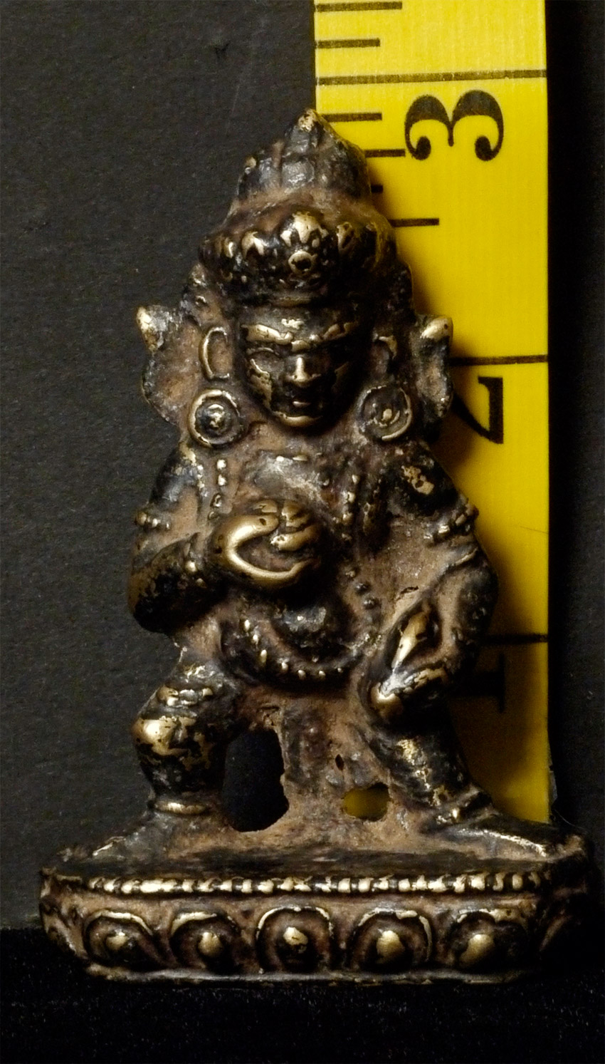 Himalayan Jambala or other related figure. Stands 2 7/8 inches tall, and solid-cast. Purchased from a gentleman who is married to a woman from Bhutan, and he reportedly received this from one of her family members when visiting. Purchased as old, but based on feedback, I now believe this is a modern piece strategically aged to appear older than it appears.(thank you Ross)
