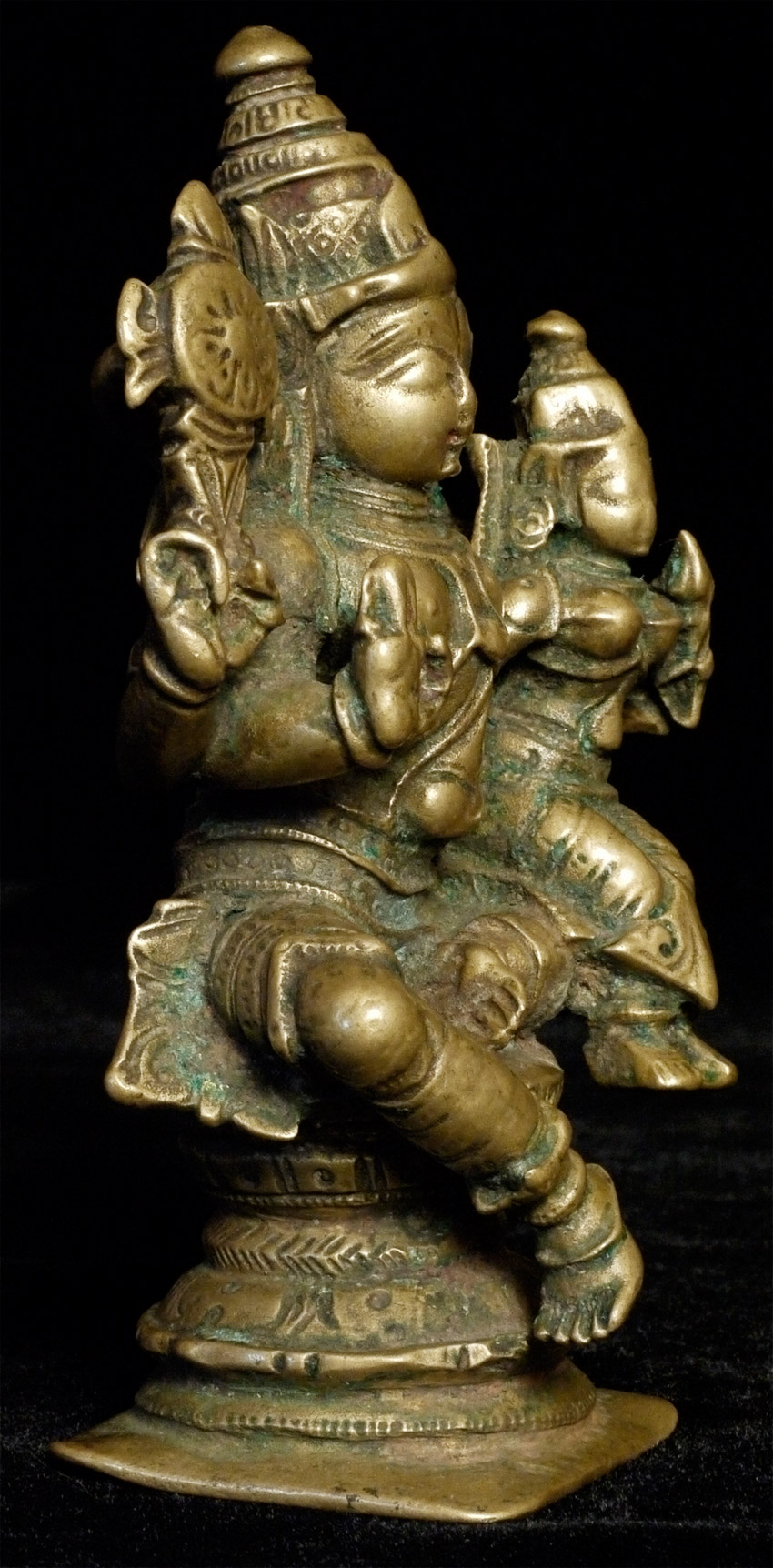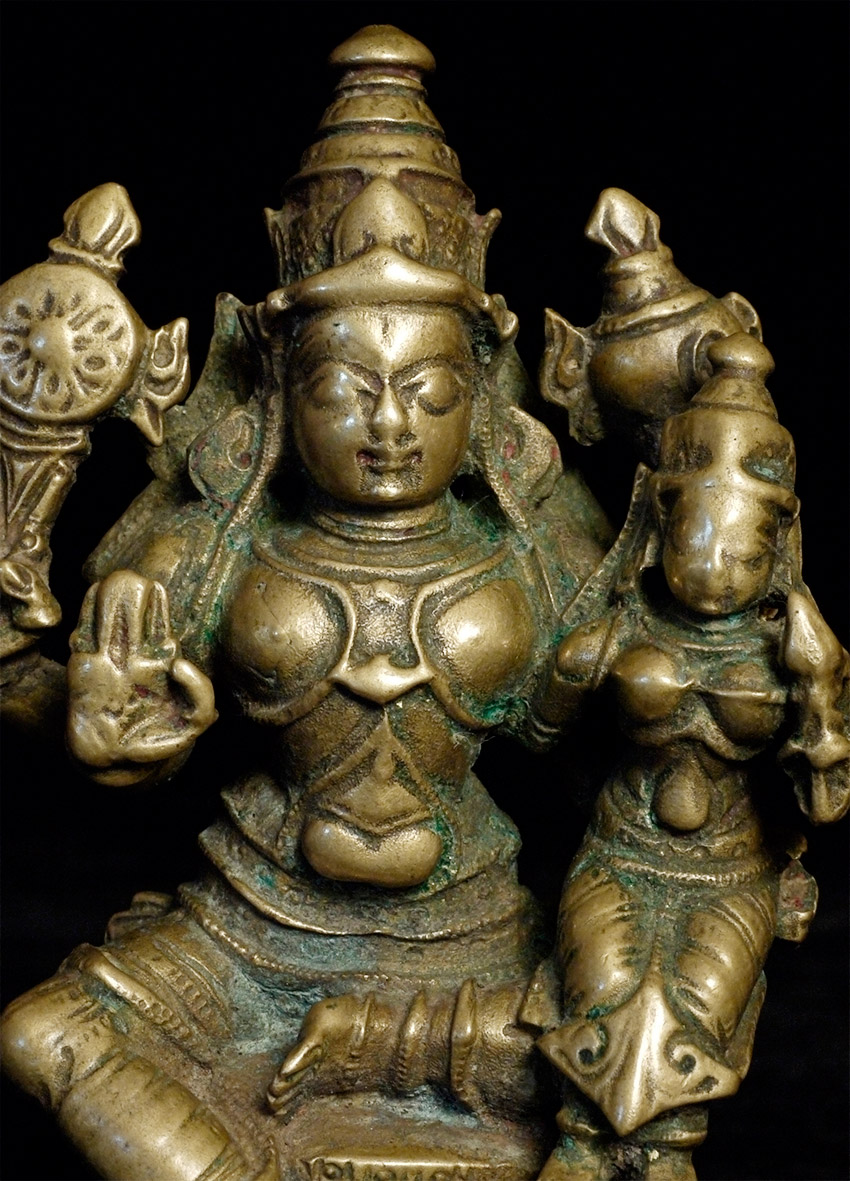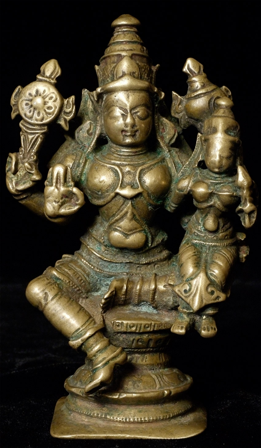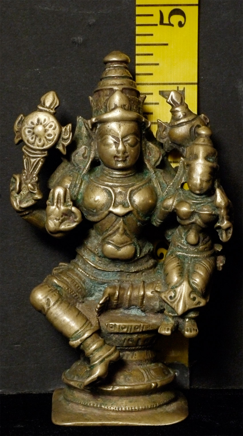Antique Hindu figure with consort. Well cast. Sits 4 3/8 inches tall.