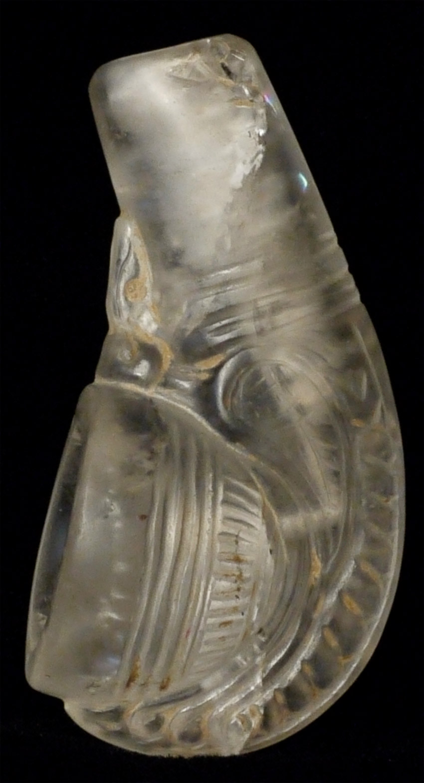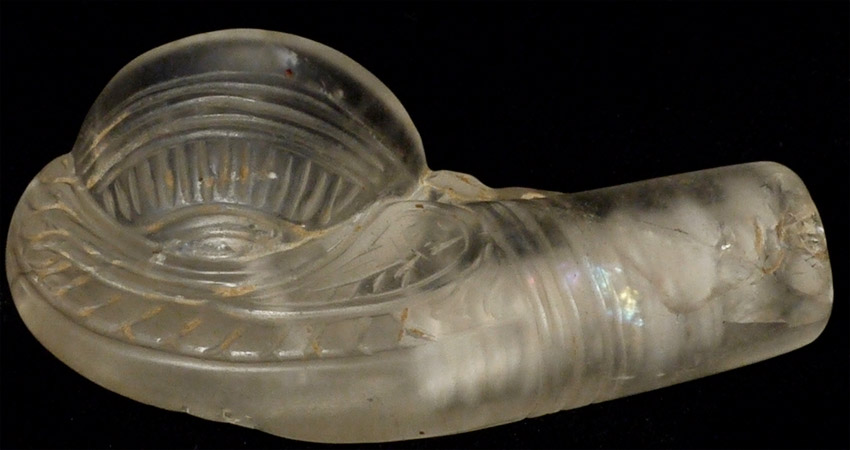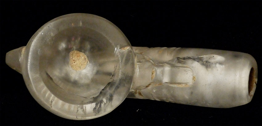 Antique quartz crystal pipe from an early Asian pipe collection. Previous owner believed it is Burmese, and pre-19thC. I do not know how to date or place in time. Currently needs to be cleaned, as looks to have been long buried. Would have had a separate bamboo or wood handle. Length is 2.25 inches long