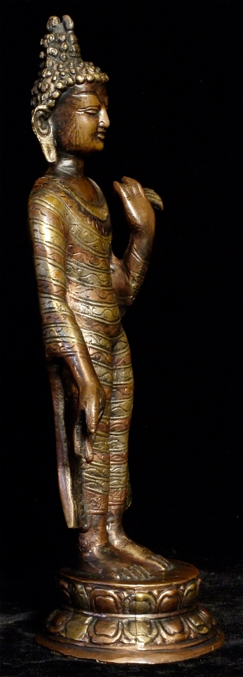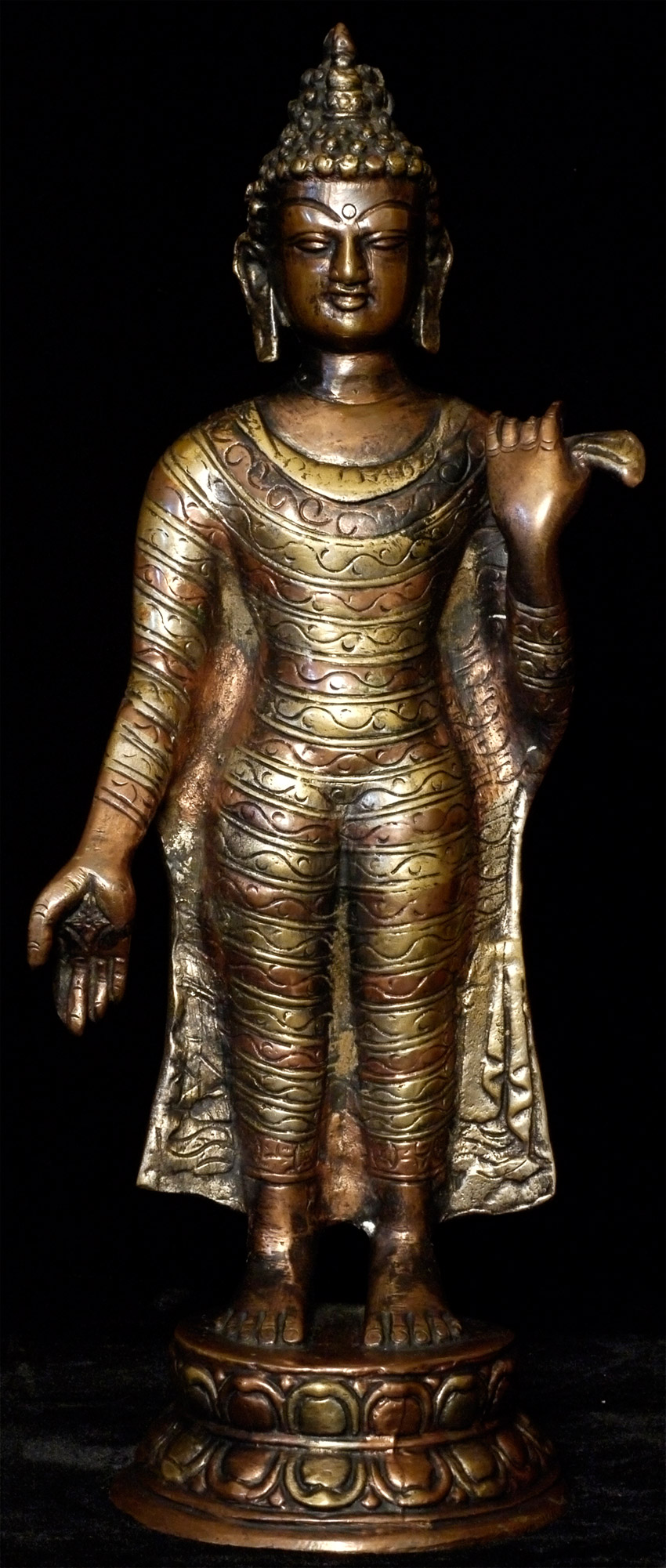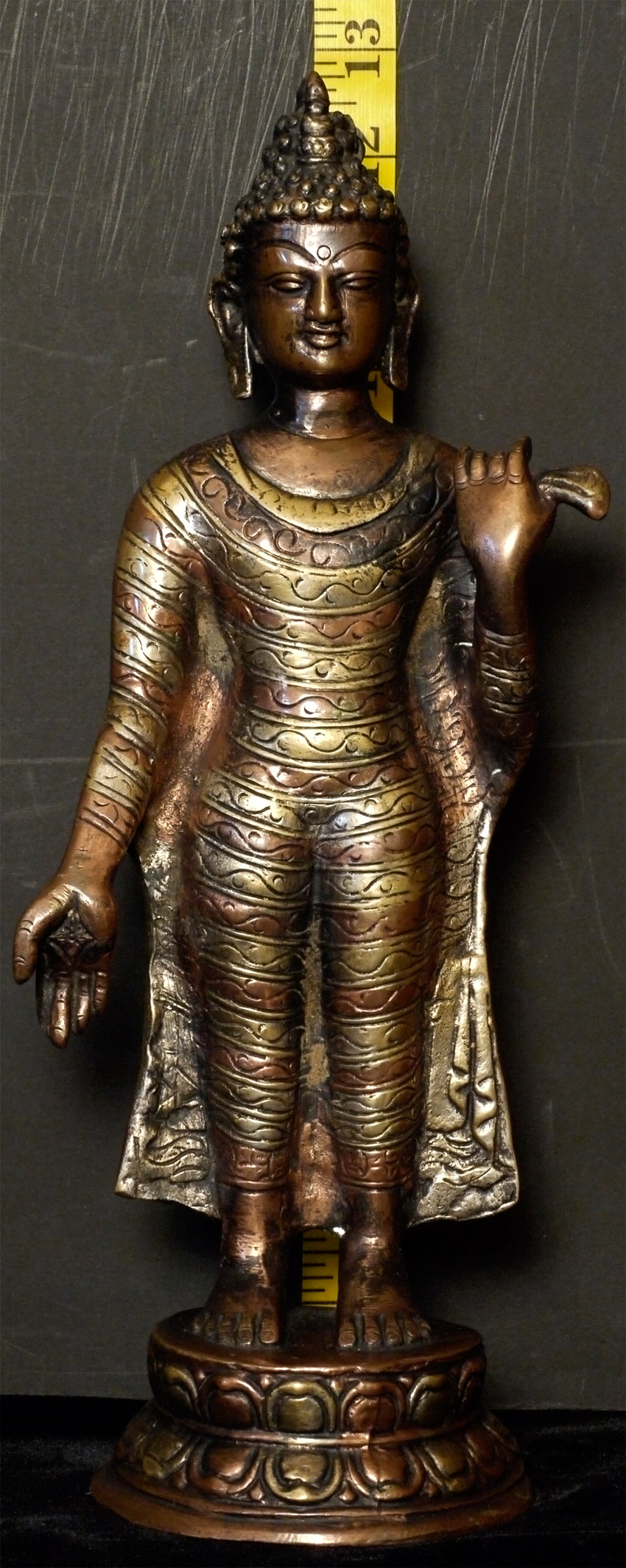 Decorative Vintage Nepalese Buddha-robes have an uncommon multi-metal surface treatment. Very good size at 12.4 inches tall.