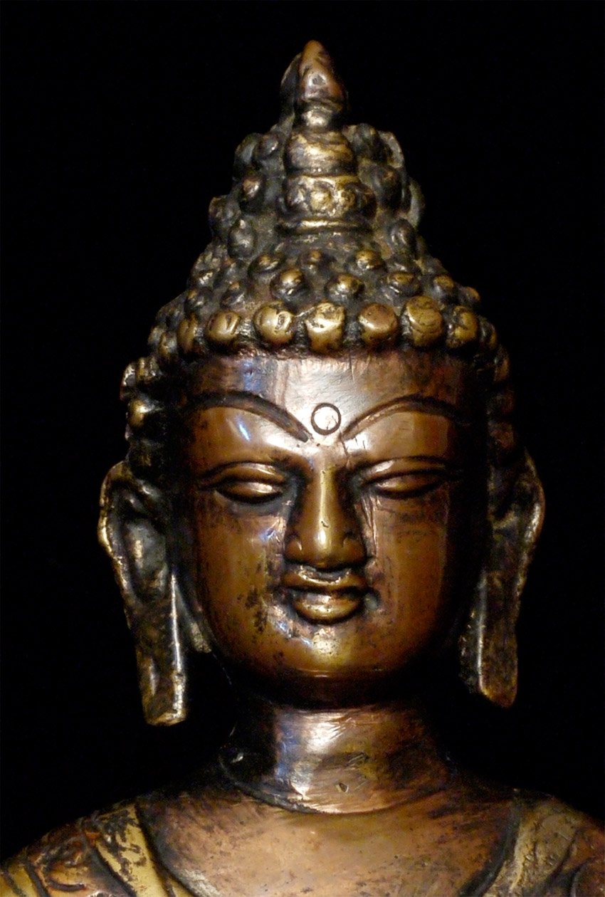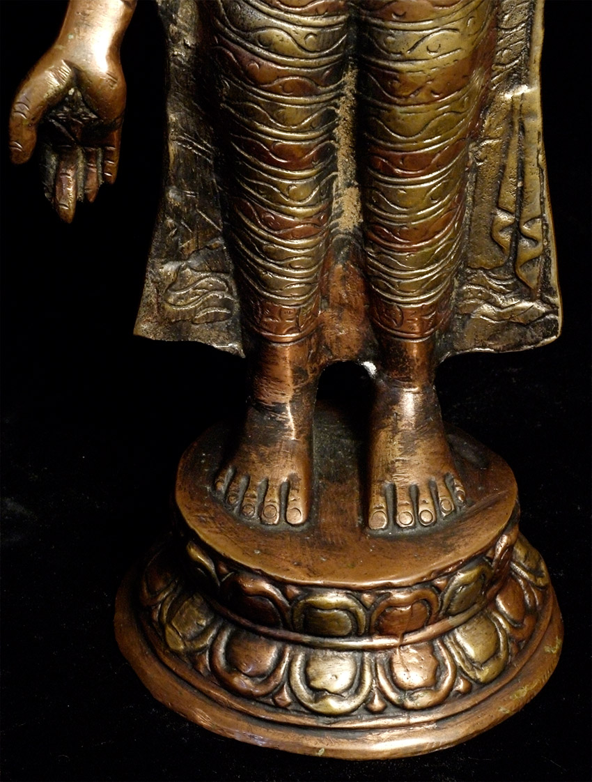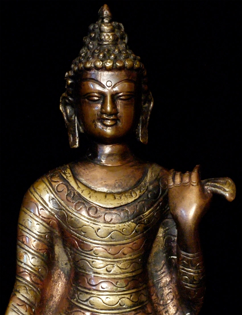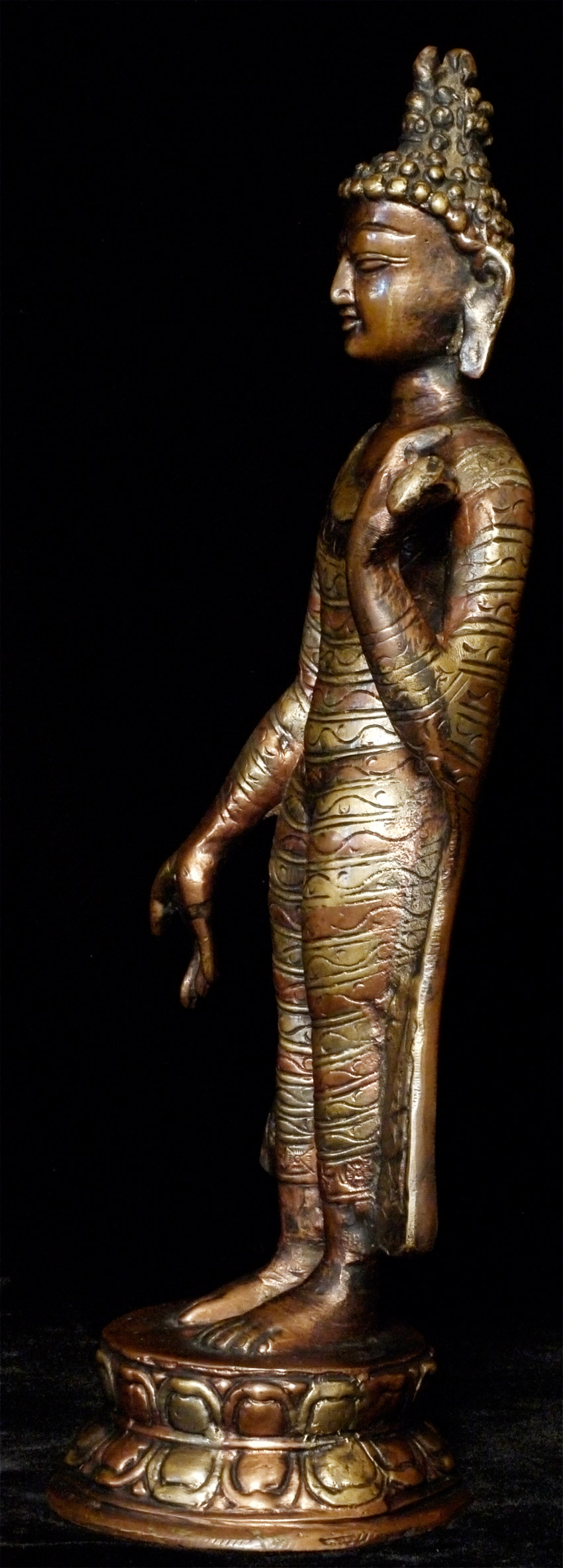 Decorative Vintage Nepalese Buddha-robes have an uncommon multi-metal surface treatment. Very good size at 12.4 inches tall.