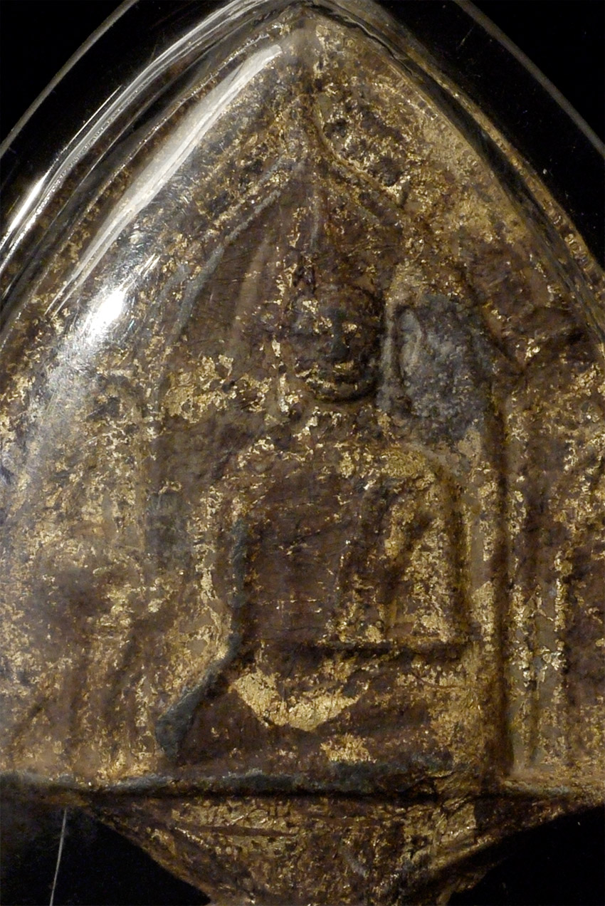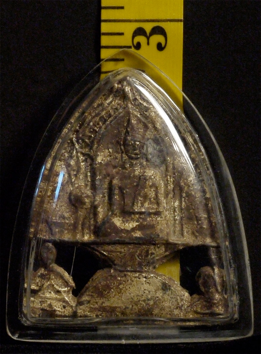 Thai metal plaque or amulet from an old collection of SE Asian amulets and small Buddhist objects collected in the 1970's and 80's. Type is 19thC. 2.75 inches tall