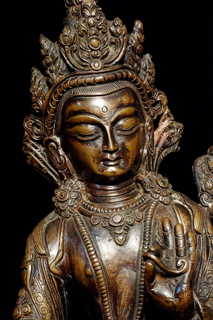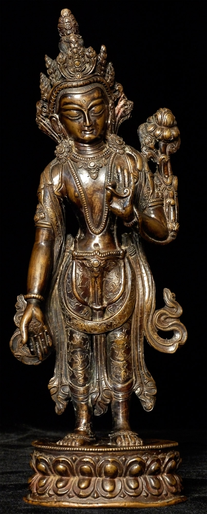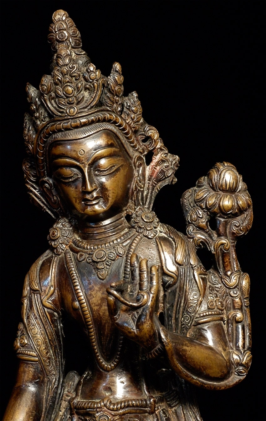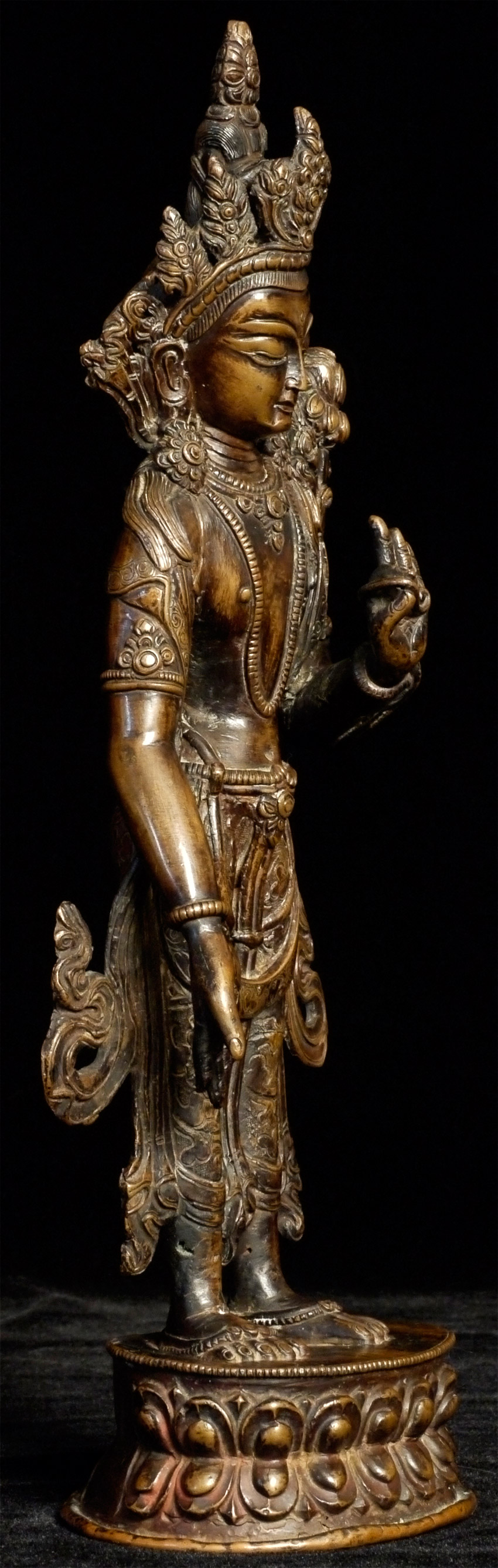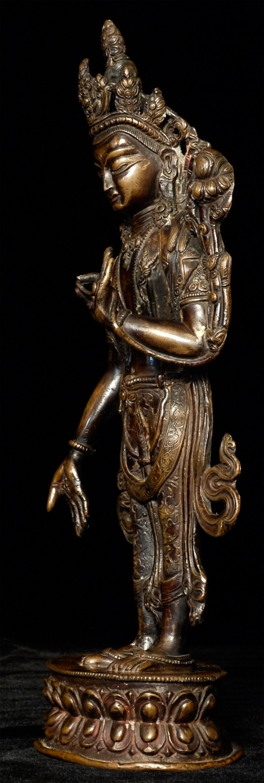 Superb 19/20thC Nepalese Padmapani. Very finely and sculpted and cast. Great care has been put in to every detail of the finishing and detail work-look closely at the photos- this is a beautiful sculpture. Large at 11.5 inches tall and quite heavy for its size. Exceptional example of its type.