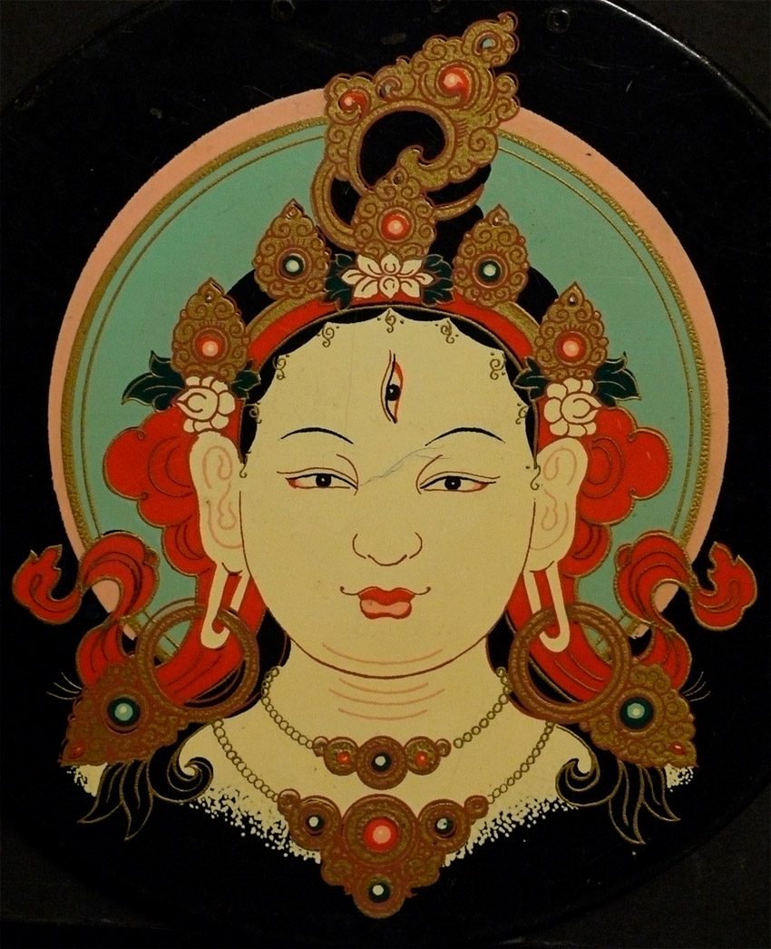 Vintage Mongolian Bodhisattva-probably 50 to 70 years old. Size is 8.75 inch diameter. Ive seen a few of these-most are really beat up. Made during the soviet era.