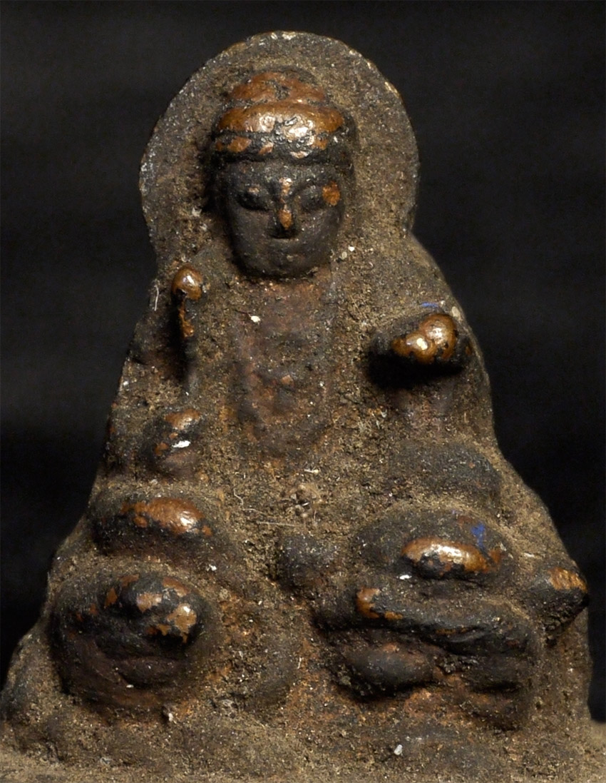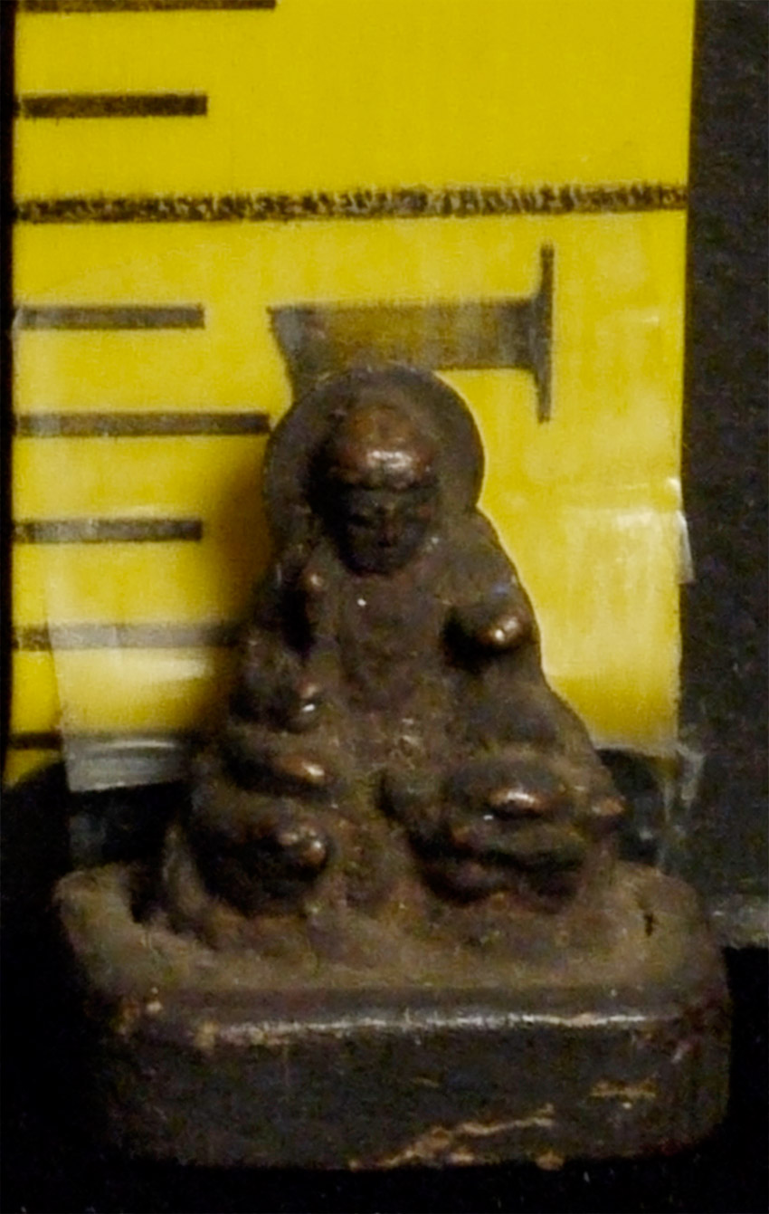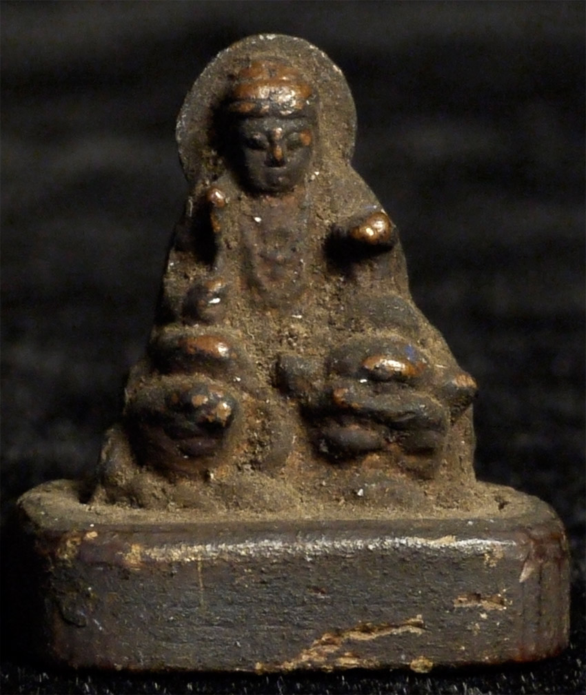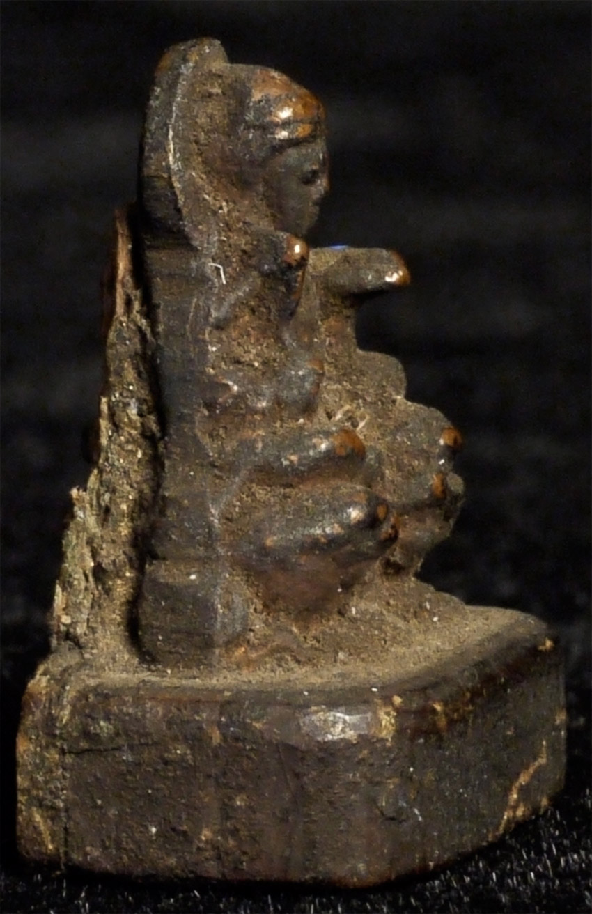 This amazing carved Japanese micro-mini wood Bodhisattva upon a beast measures just over .75 inches tall. Probably 18/19thC Edo, and from a small portable shrine. Never seen one close to this small in wood- from any culture. Could be turned into a wonderful piece to wear, back in to a portable shrine, as part of a group of miniatures, or just about anywhere.
