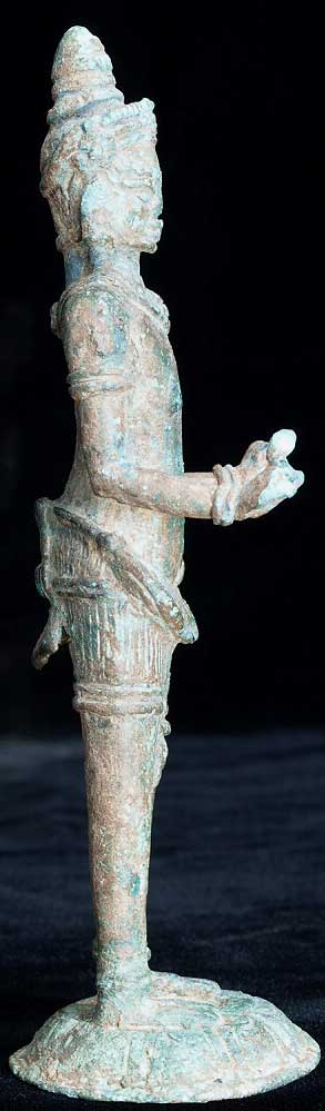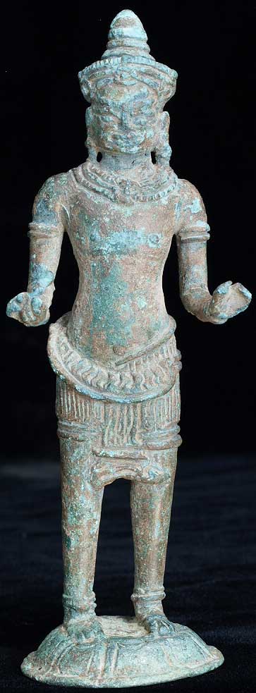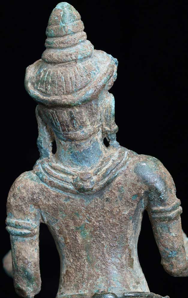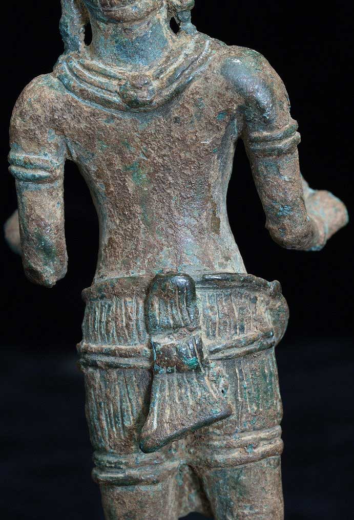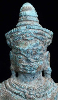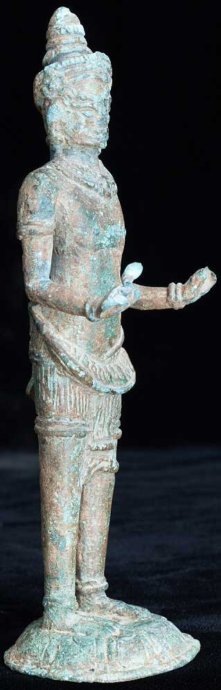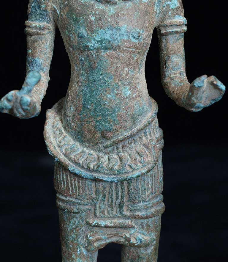 This is an authentic 12th century Angkor Wat era bronze Buddha. This piece was de-accessioned by the Asian Art Museum in San Francisco, and has Museum inventory numbers on the bottom. Based on other pieces I have seen, if I read the numbers correctly, this piece was catalogued in to the museum in 1987, or 18 years ago. Periodically the museum sells off items to raise funds for new purchases. This piece was dated by the museum as 12th century. The only loss is to the piece is to the fingertips and surface details. The actual figure is fully intact. It has a marvelous patina. The face does have some wear as seen in the photos. It stands to 5.75 inches tall.