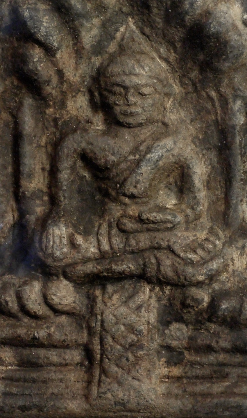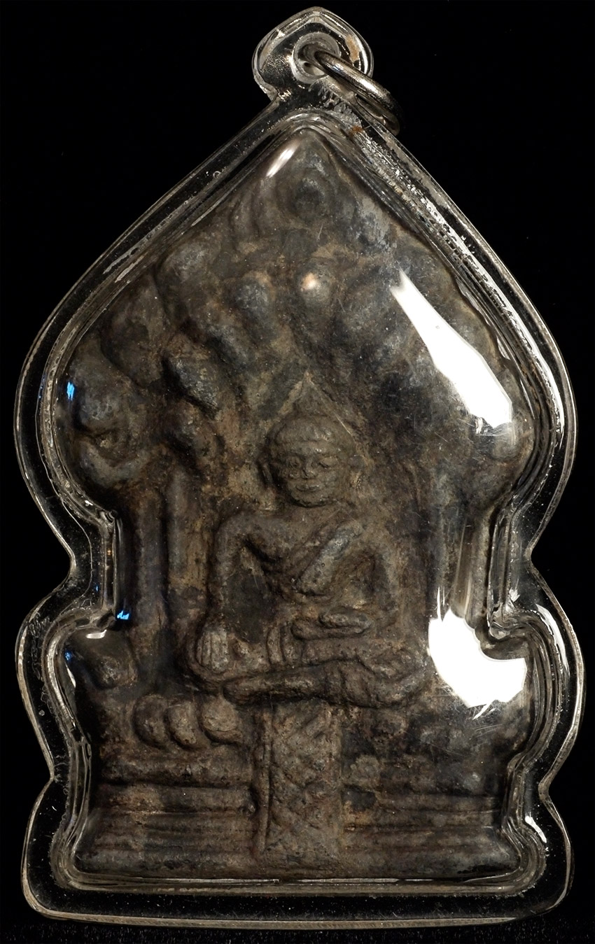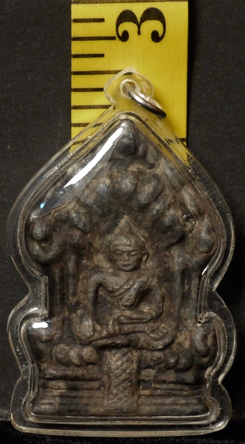 Cambodian alloy plaque or amulet Naga Buddha from an old collection of SE Asian amulets and small Buddhist objects collected in the 1970's and 80's. Look to have very good age, though very hard to date accurately- possibly period 12/13thC, possibly later . Plaque is 2.25 inches tall, case is 2.5 inches tall