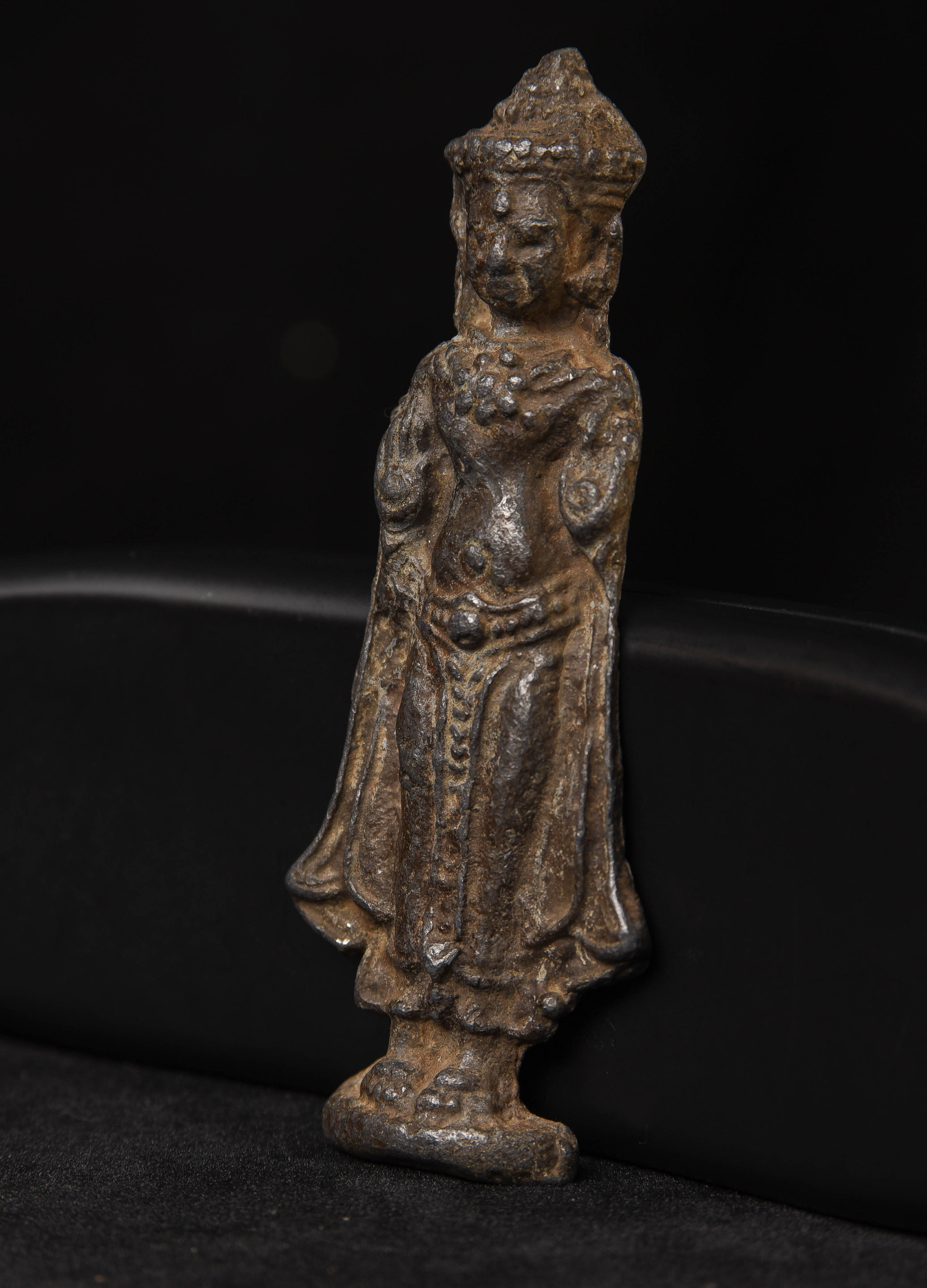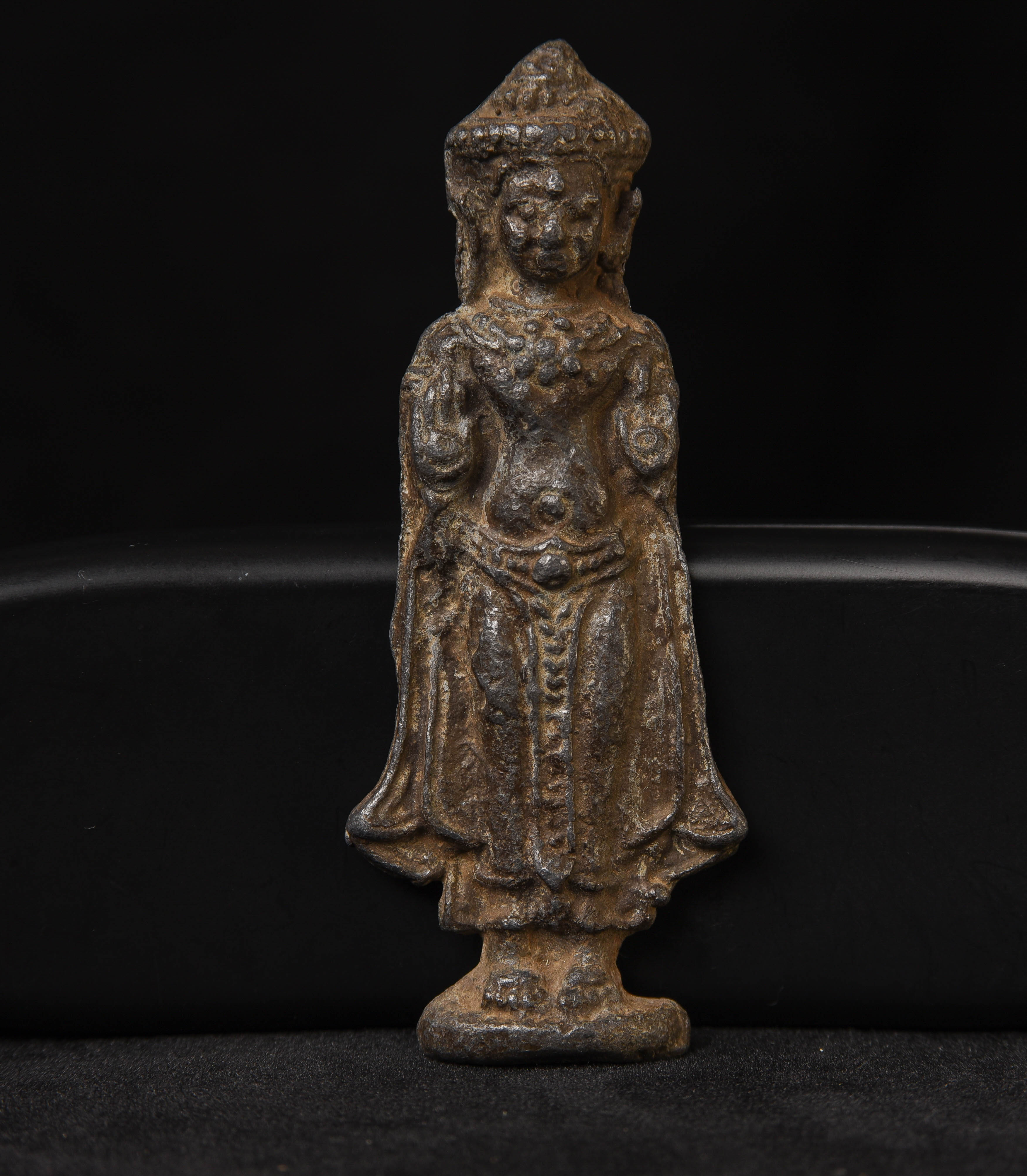 Cambodian alloy plaque or amulet Naga Buddha from an old collection of SE Asian amulets and small Buddhist objects collected in the 1970s and '80s. Look to have very good age, though very hard to date accurately- possibly period 12/13thC, probably18/19thC This piece measures 3.75" tall (does not stand on own). 7148.