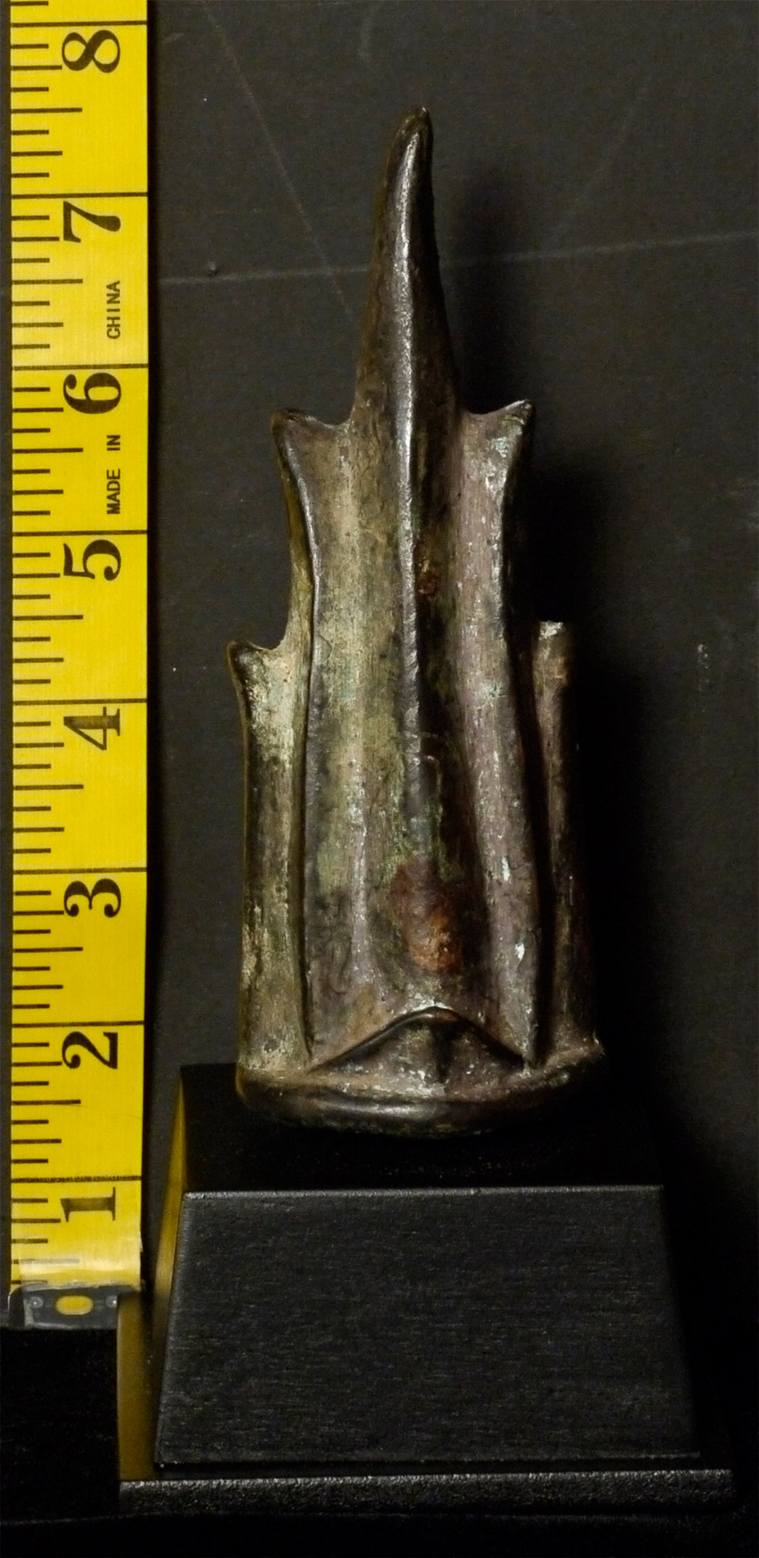 Massive Thai Buddha Finial cast in bronze. Probably at least 400 years old, and possibly much earlier. 5.75 inches tall, total height on stand is 7.5 inches