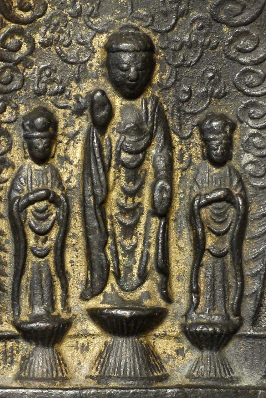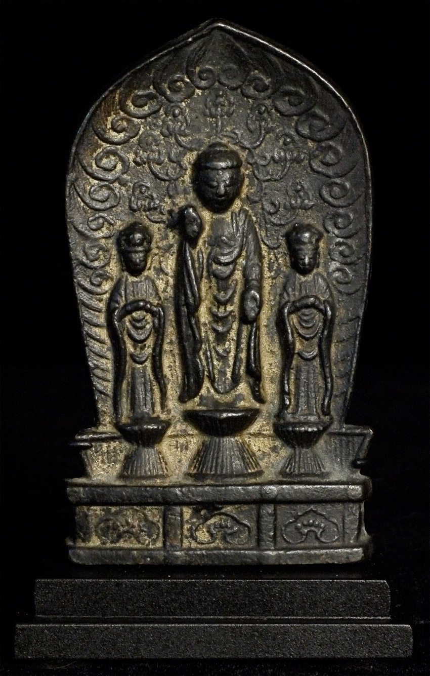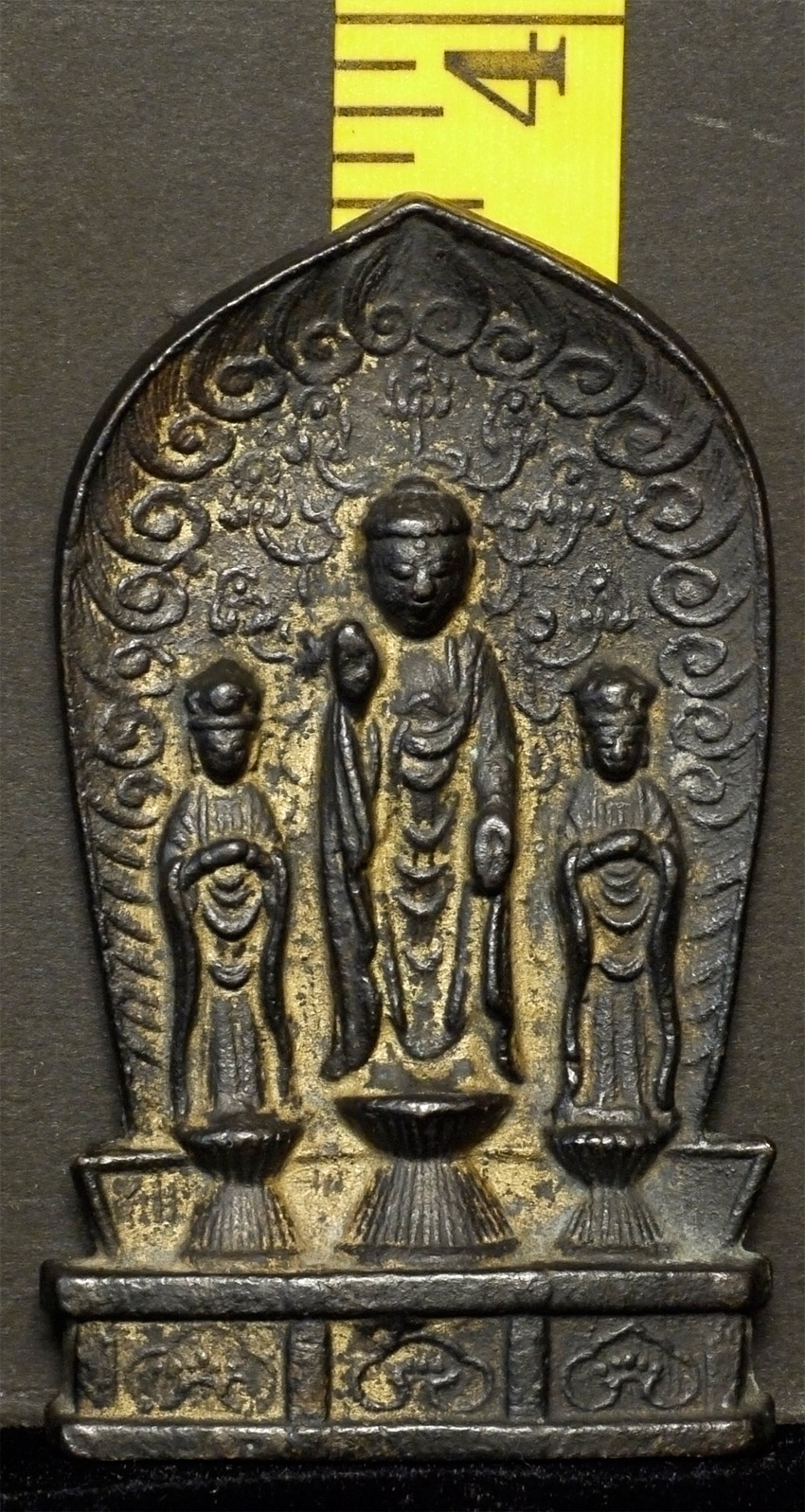 Early bronze Japanese Buddha trilogy. Size is 3.5 inches tall.