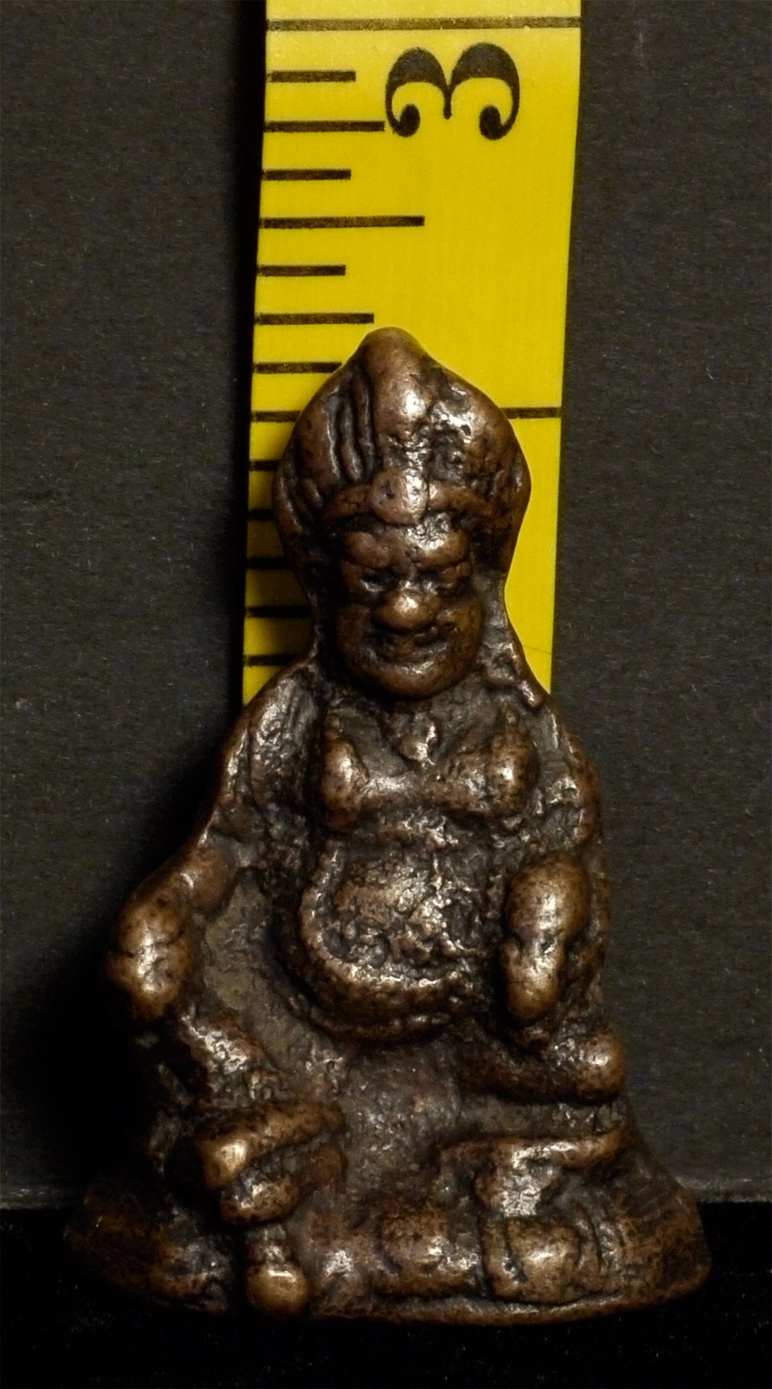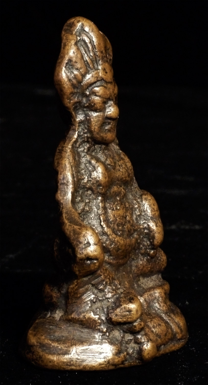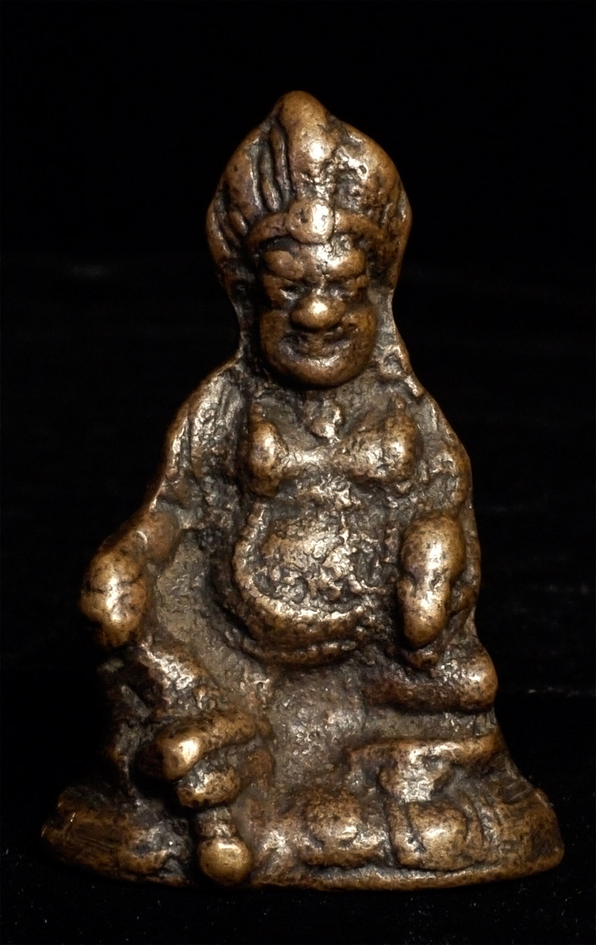 VERY early (600 years+) solid-cast Tibetan or Nepalese Jambala. Deeply serene face which radiates calm and peace. From an old collection of very early solid-cast Buddhist figures that also included items 6814, 6815 and 6826. Sits only 2 and 25 inches tall, but with a presence that is huge. This was my favorite from the group so I held it until now.