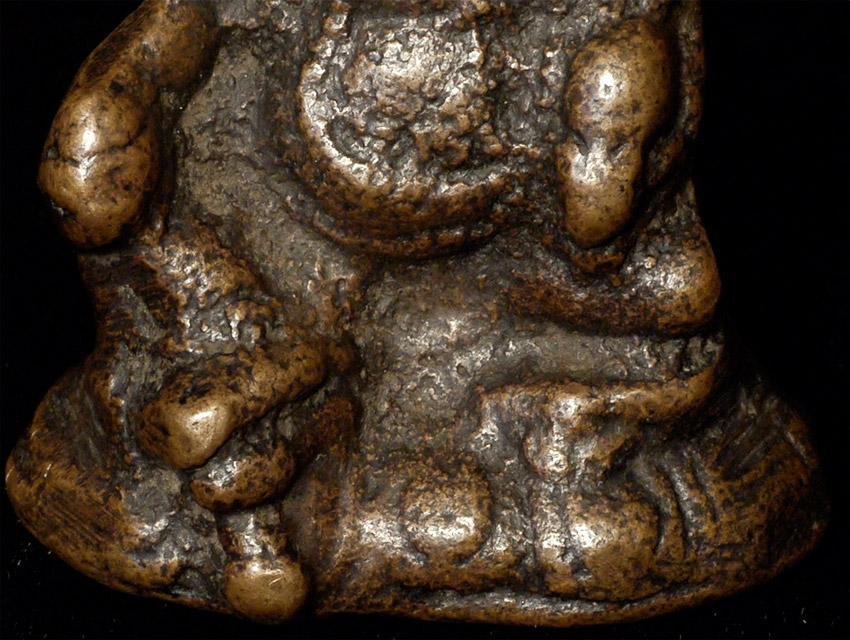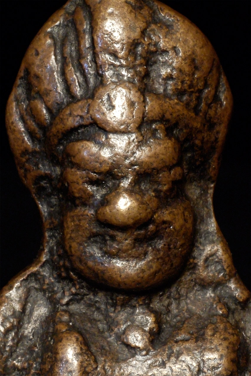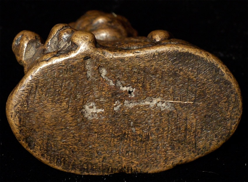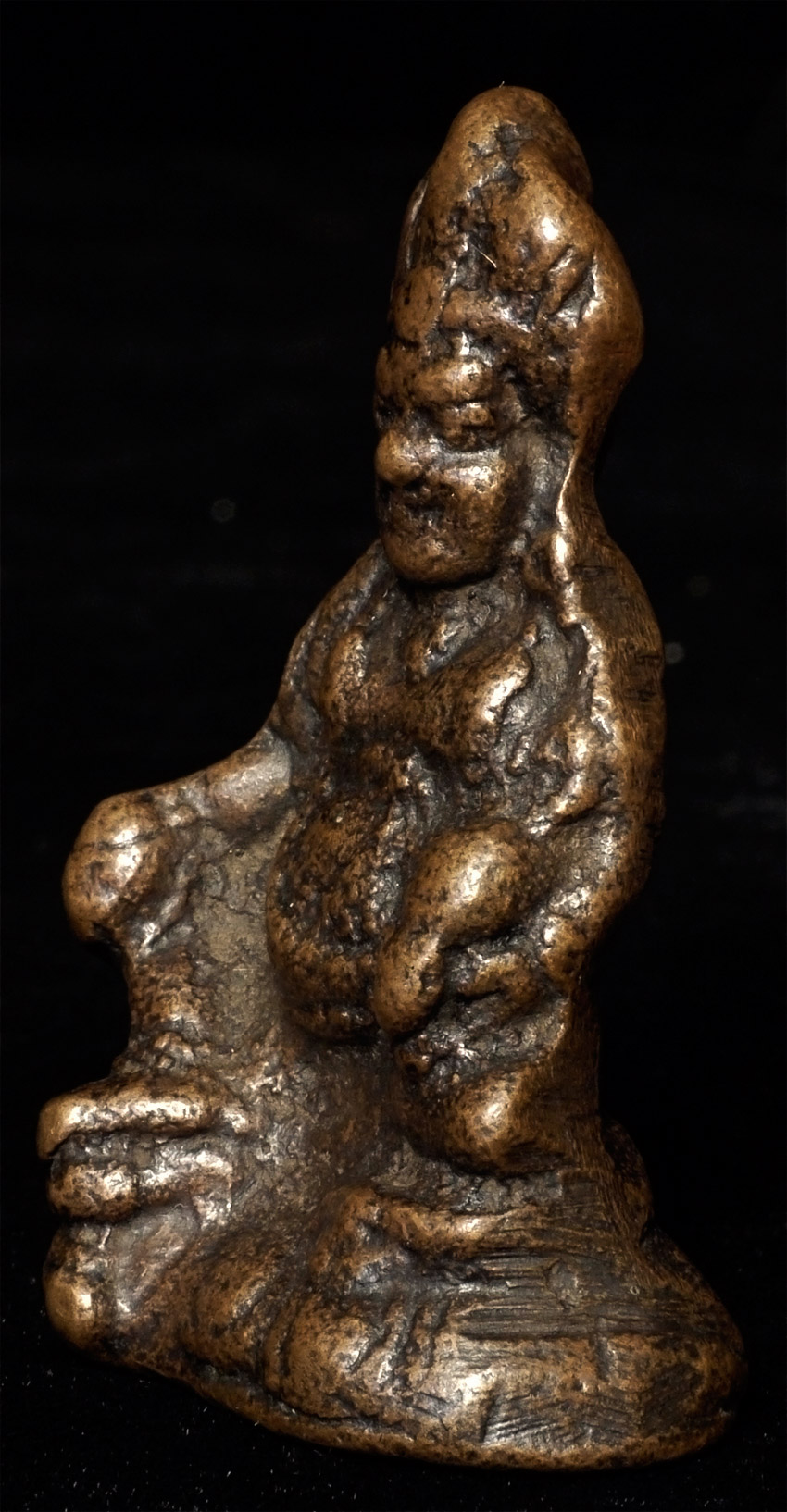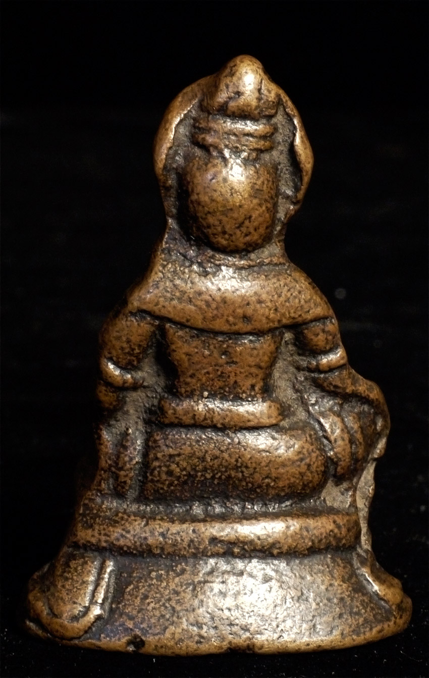 VERY early (600 years+) solid-cast Tibetan or Nepalese Jambala. Deeply serene face which radiates calm and peace. From an old collection of very early solid-cast Buddhist figures that also included items 6814, 6815 and 6826. Sits only 2 and 25 inches tall, but with a presence that is huge. This was my favorite from the group so I held it until now.