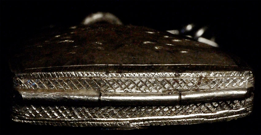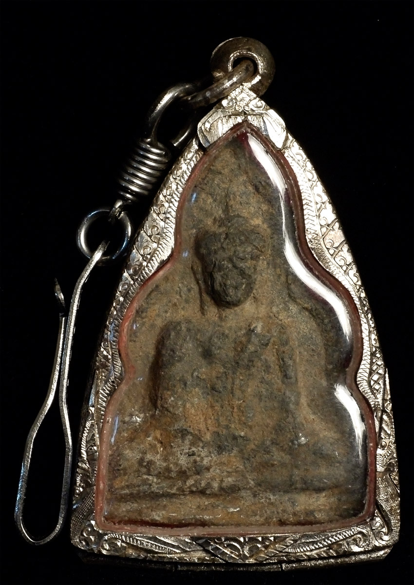 Thai 14-15thC bronze amulet (possibly a bit older) from an old collection of SE Asian amulets and small Buddhist objects collected in the 1970's and 80's. Amulet case (modern) is 2 inches tall.