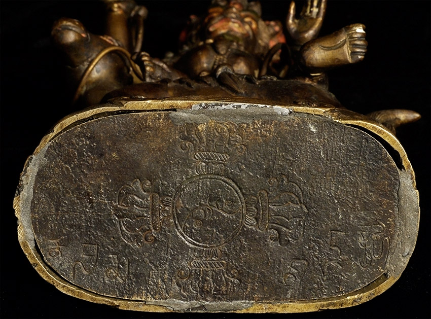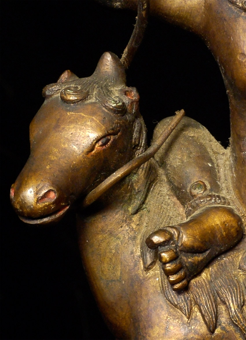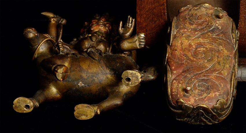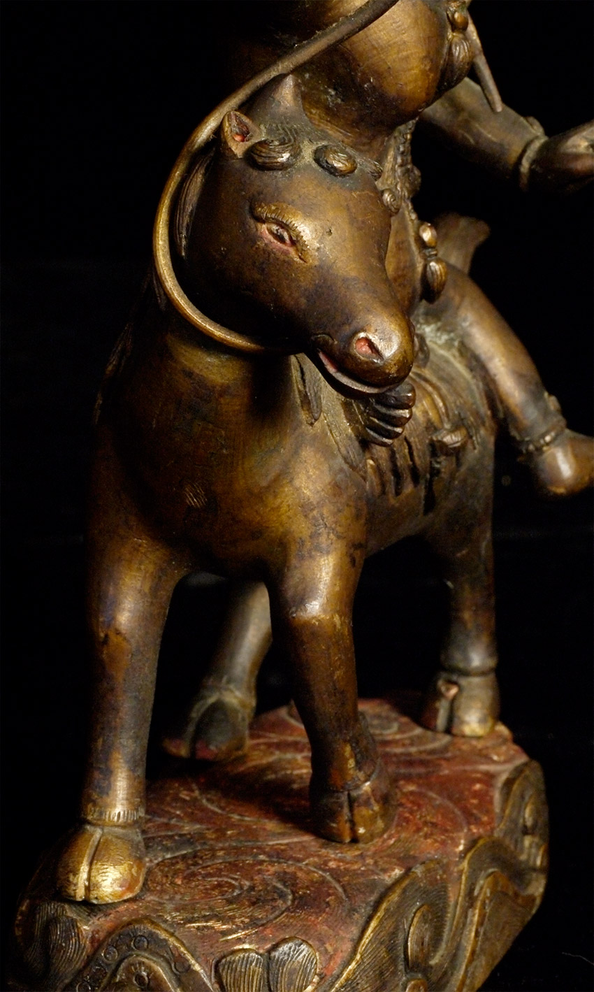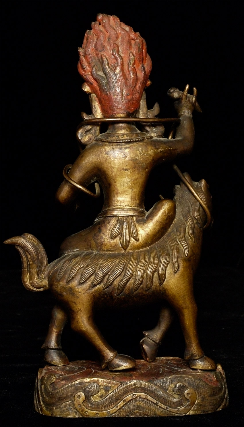 19thC Mongolian Deity on Horse. Particularly expressive example (and especially wonderful horse!). Unususal alloy sometimes seen in Mongolia. 8 inches tall