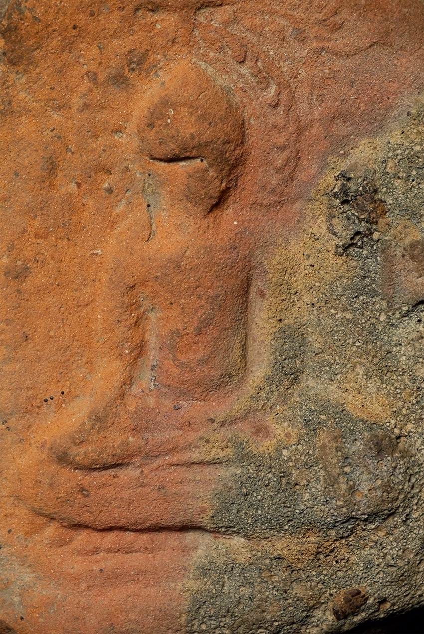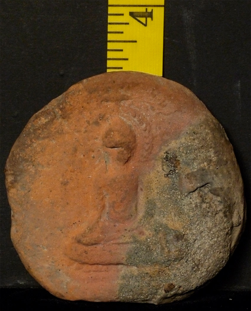 Authentic Pyu or other very early Buddha tablet. Complete example in excavated condition. Years ago there were a number of these in the market place, but the authentic ones have mostly disappeared. I bought a group of early tablets about 10 years ago and kept a few of the best examples for myself, of which this is one. 3 1/8 inches tall. Most of the others were found in multiples- this type there was only this one found.