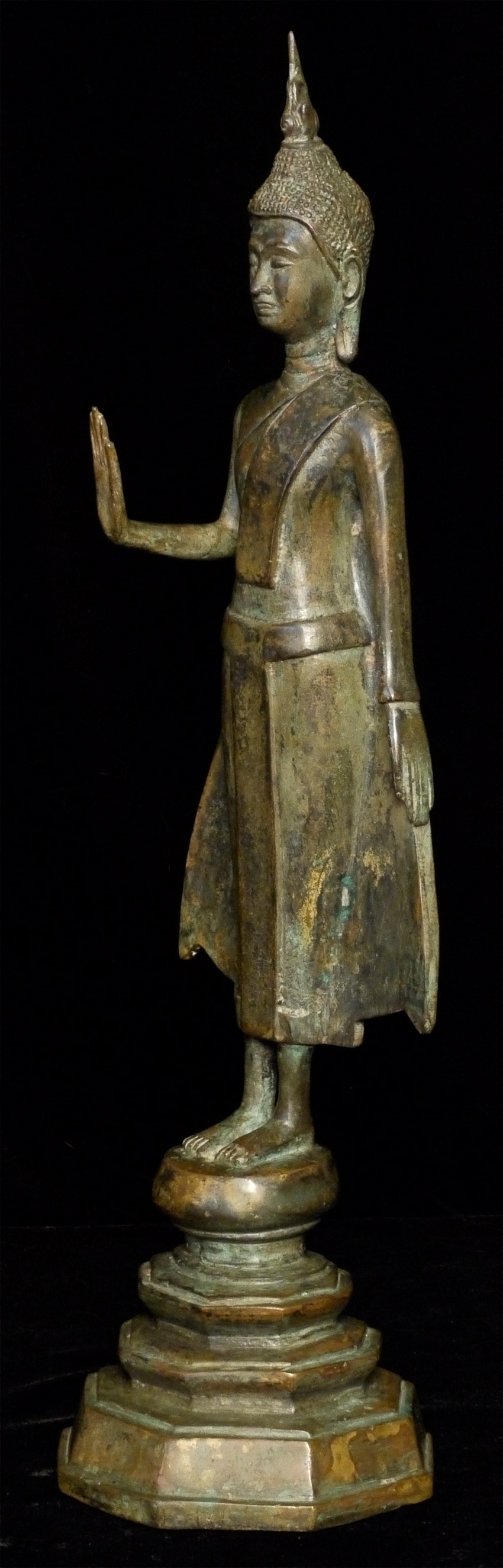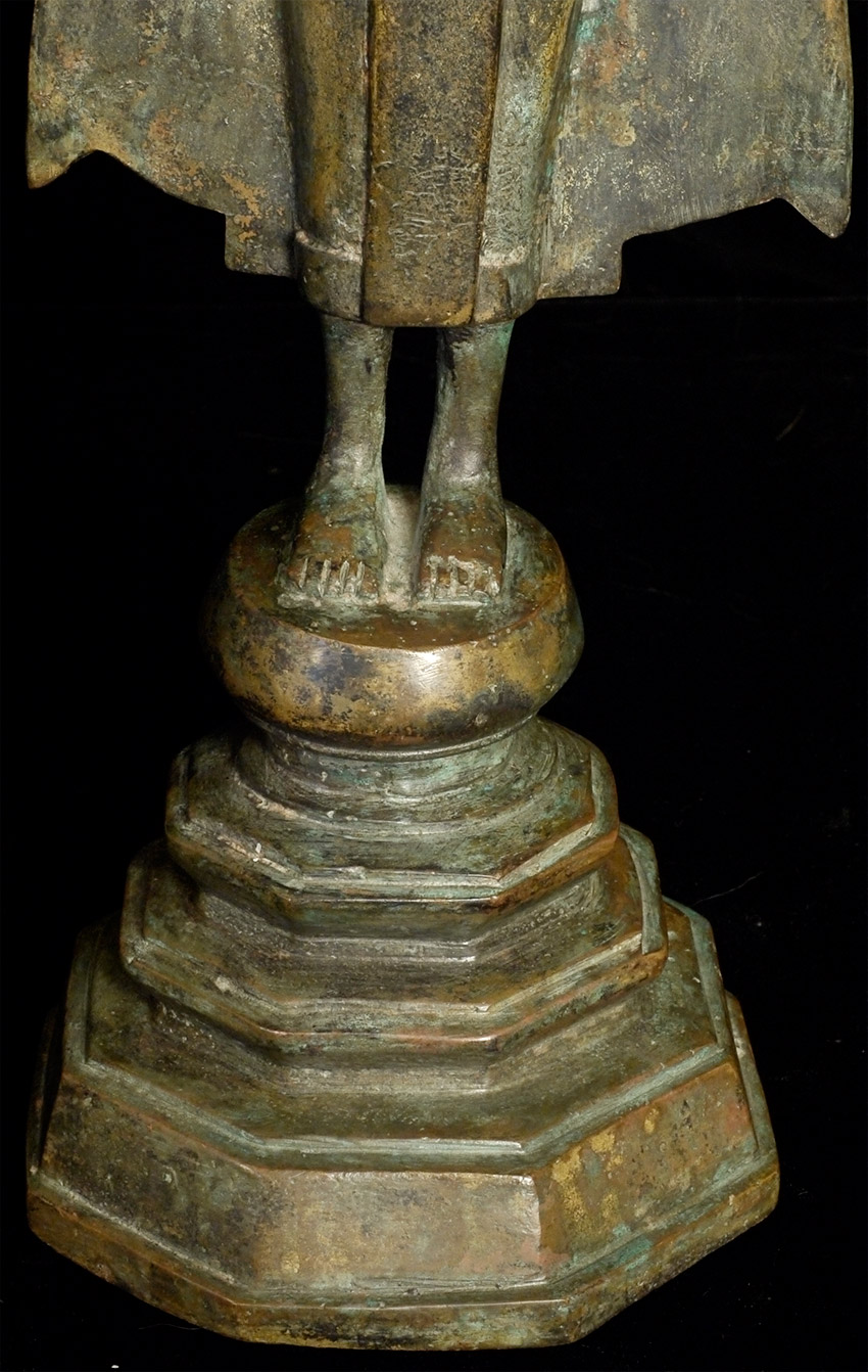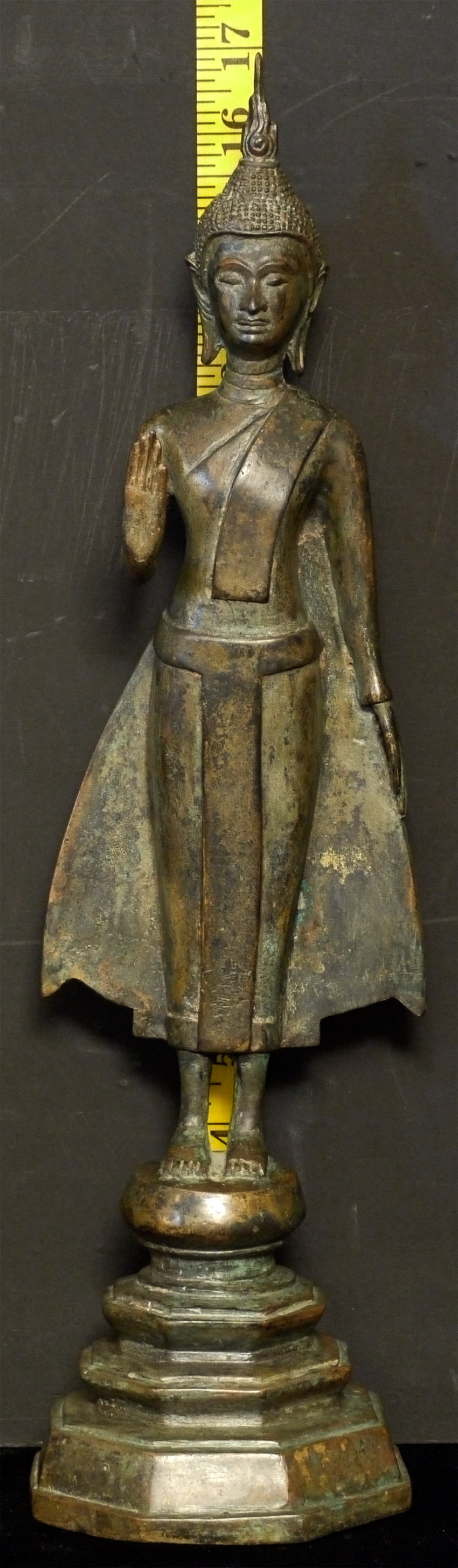 Early 20th C Thai Bronze Buddha. Solid cast type. Stands 17 inches tall, and heavy for its type.