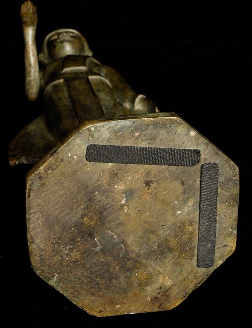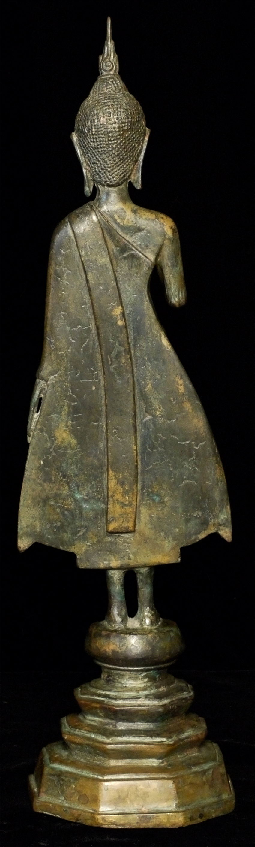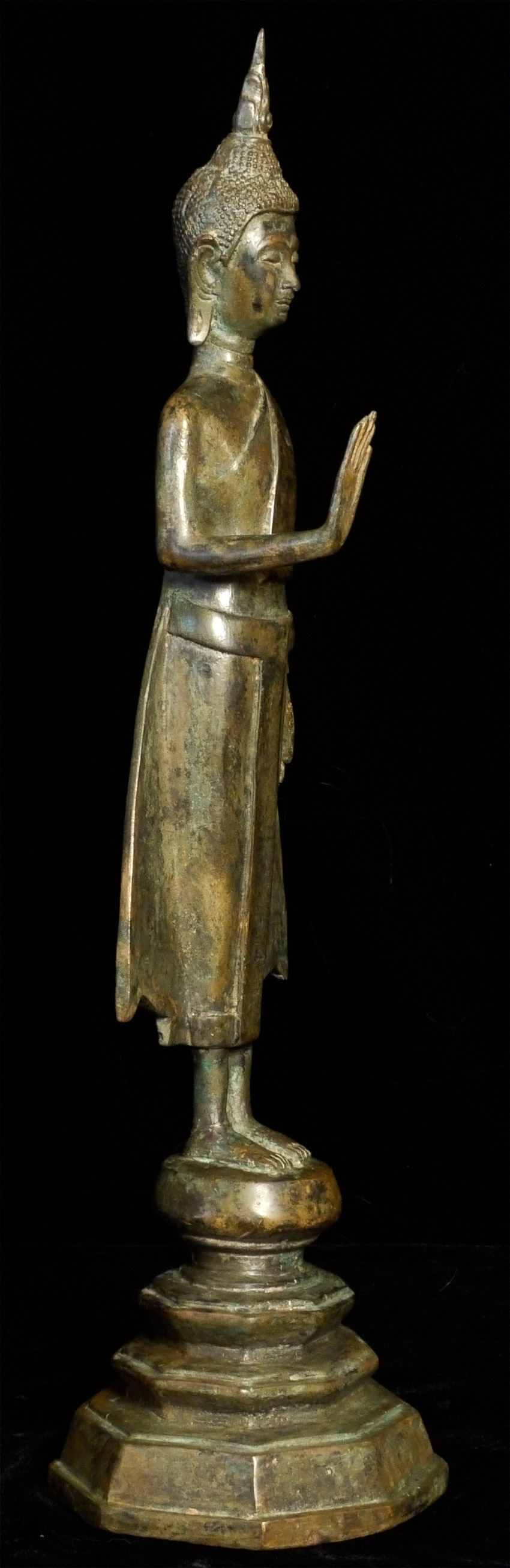 Early 20th C Thai Bronze Buddha. Solid cast type. Stands 17 inches tall, and heavy for its type.