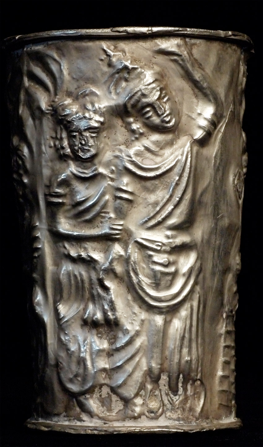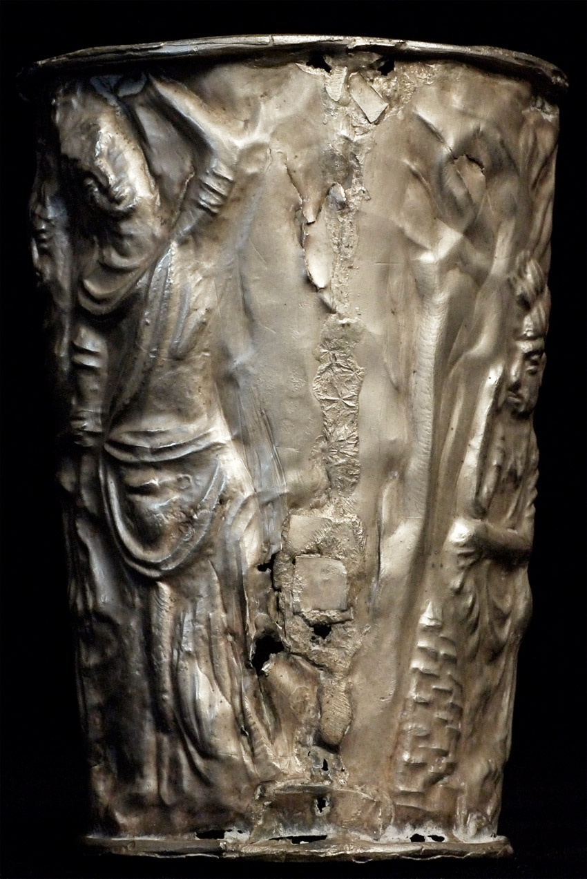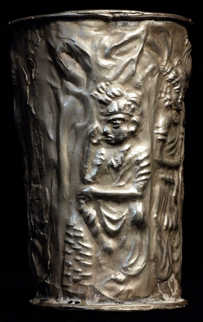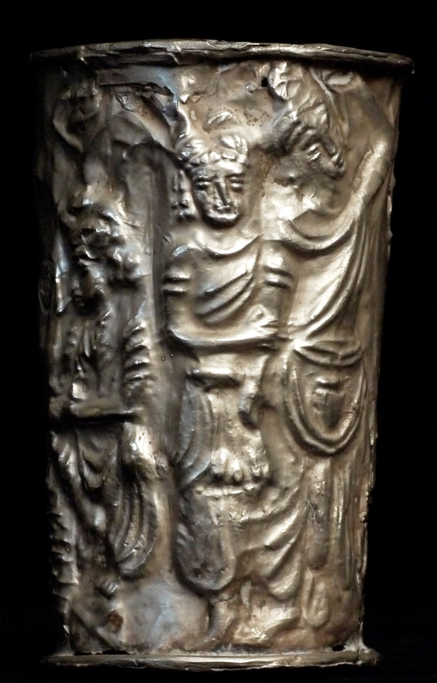 Rare Gandharan silver cup I obtained through a trade with a well respected Southern California collector. Stands 3.5 inches tall, top diameter of 2.5 inches. Remarkable survivor.