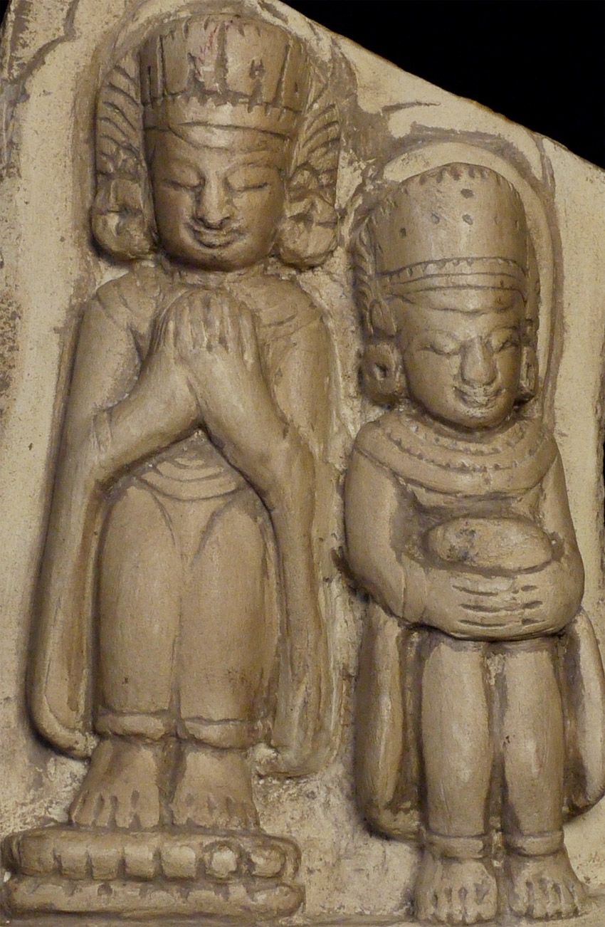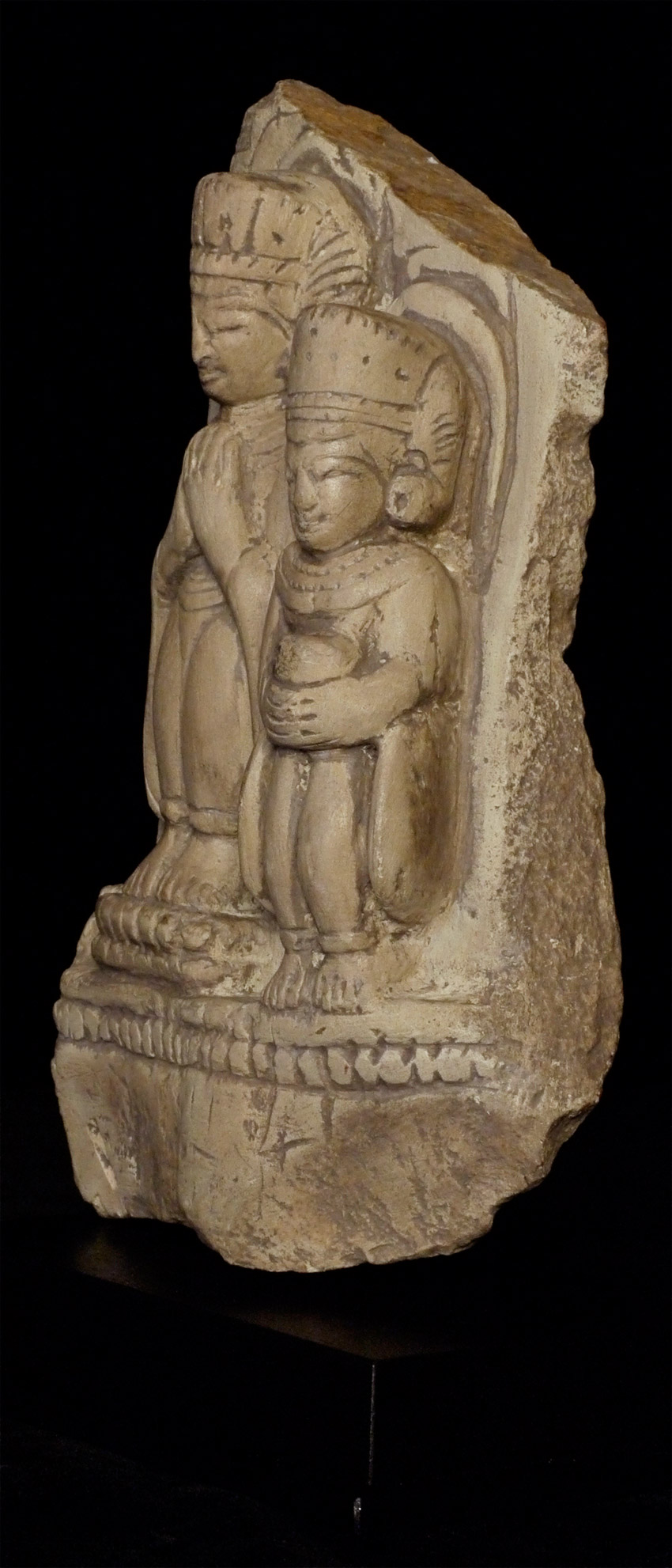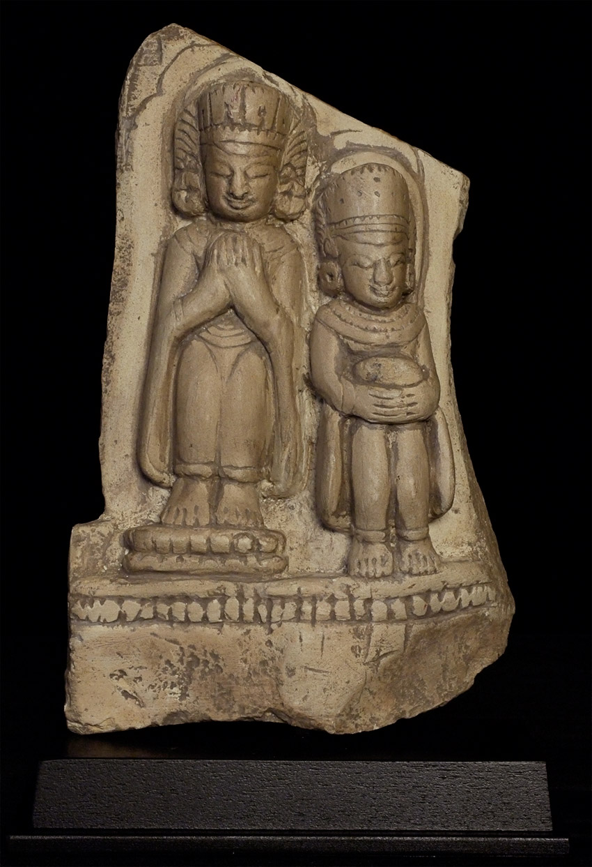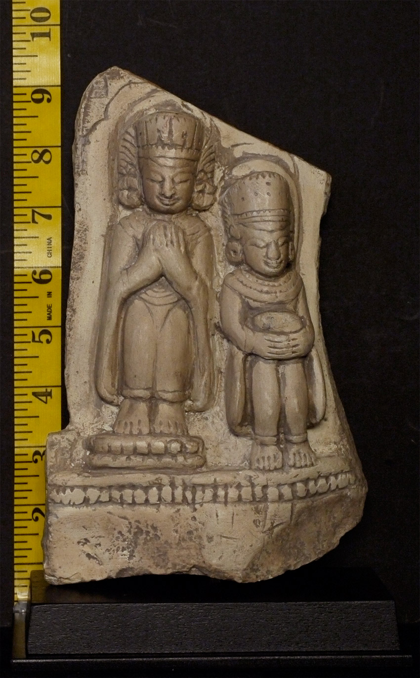 Burmese Arakan 9-15thC representation of a king in the form of a Buddha and monk. Now on a custom base. Stone alone stands 8 inches tall, height on custom stand height is 9.25 inches. Hard to date precisely, as this type of style was emulated over a wide period of time. Great smiles!