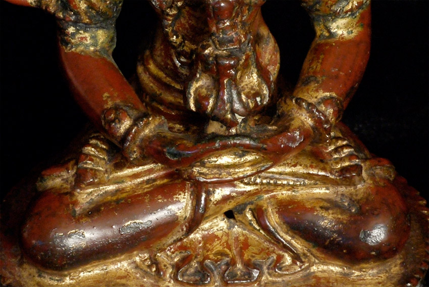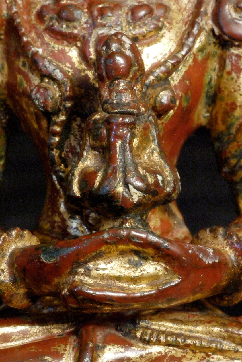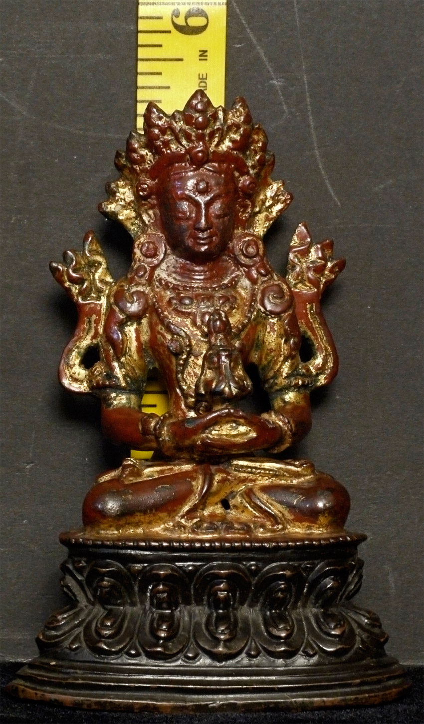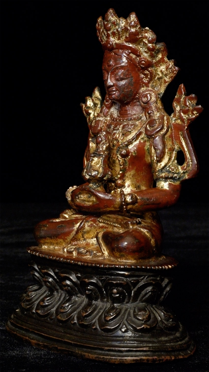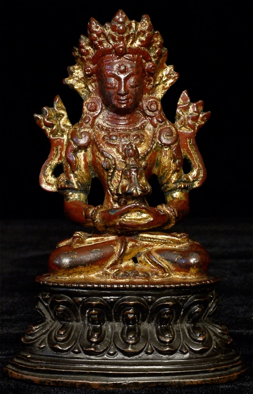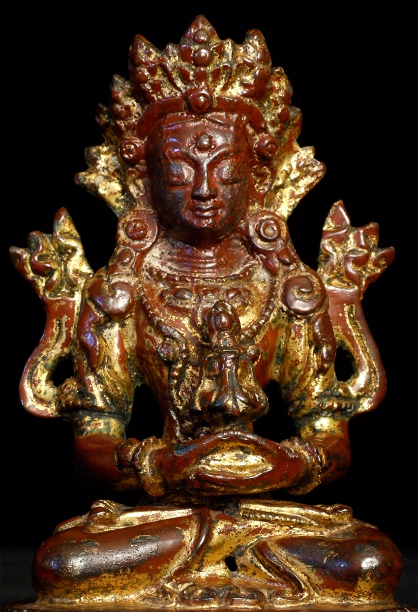 16/17thC Tibetan Bronze Buddha with much of original lacquer and gilding remaining. Probably from West Tibet. Very beautiful face. Sits 5.25 inches tall.