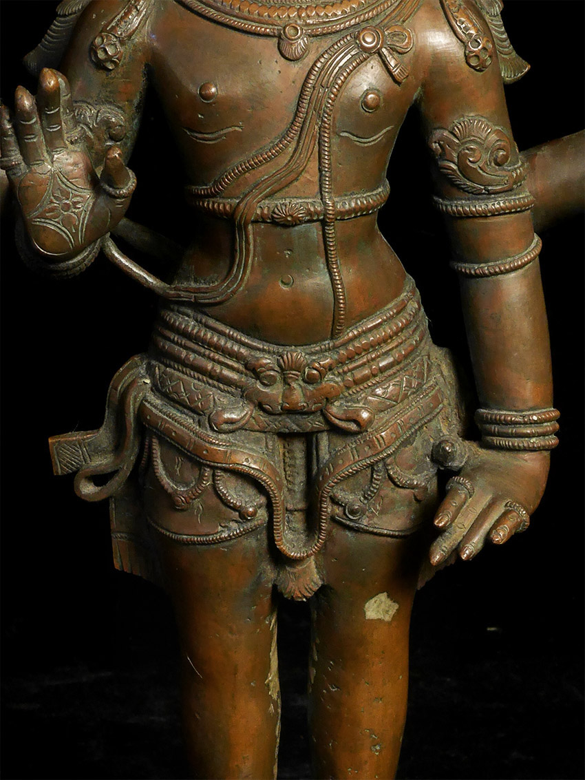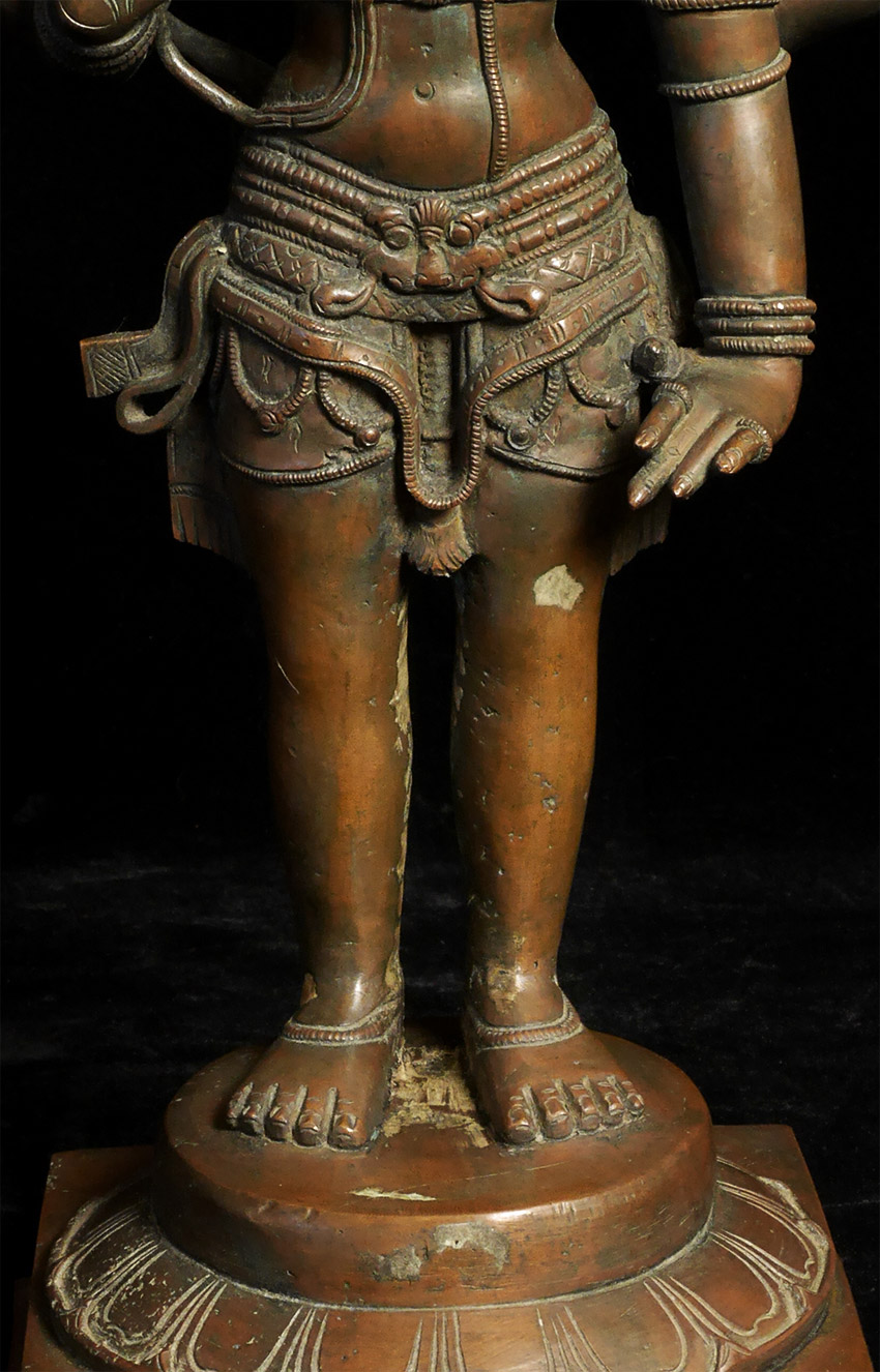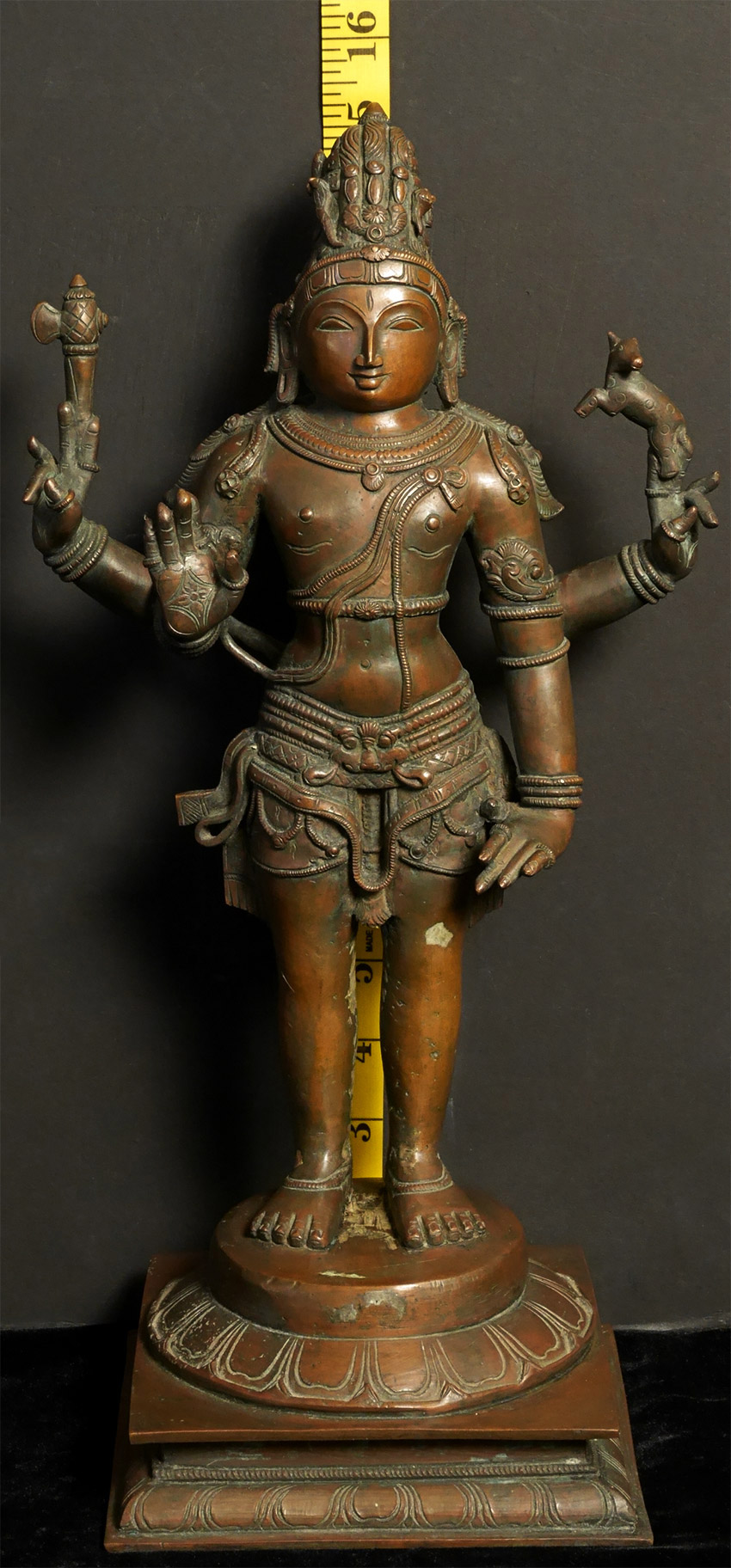 Large Antique Indian Figure. Beautifully cast and sculpted, and with a beautiful patina. Solid cast, and quite heavy, as it is 15.25 inches tall. Hard to find a piece of this size, quality, and beauty at an affordable price.