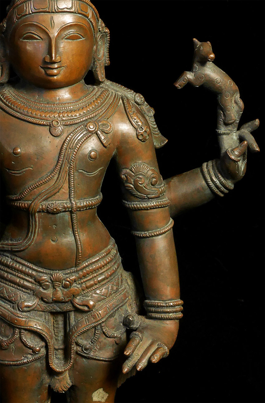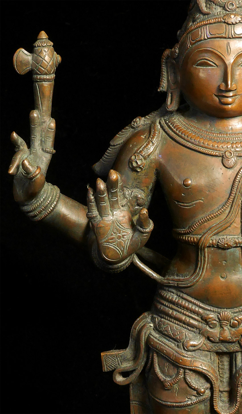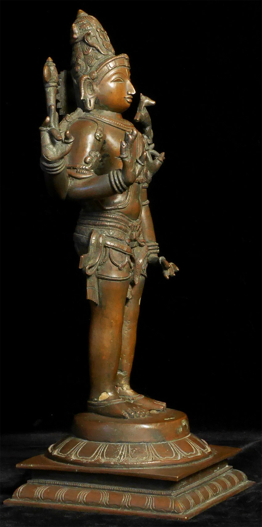 Large Antique Indian Figure. Beautifully cast and sculpted, and with a beautiful patina. Solid cast, and quite heavy, as it is 15.25 inches tall. Hard to find a piece of this size, quality, and beauty at an affordable price.