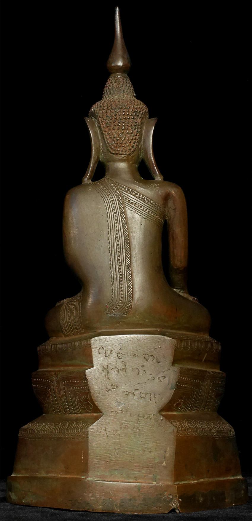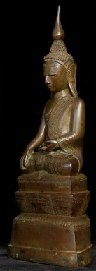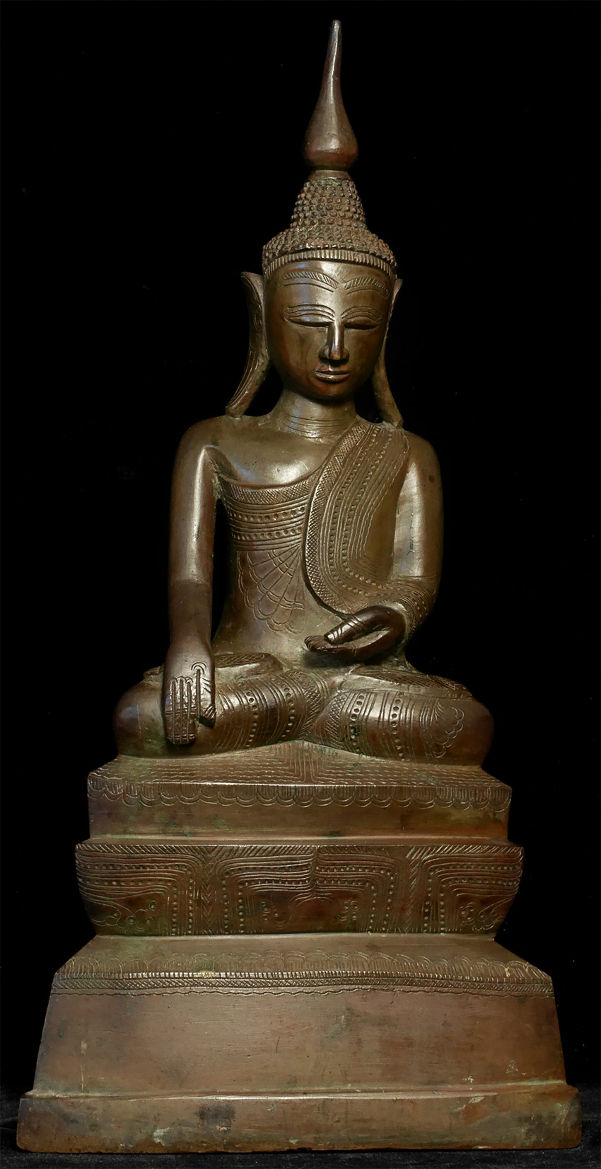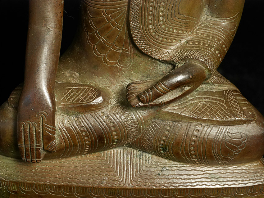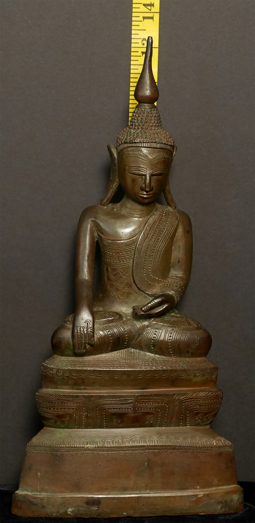 Graceful 19thC Shan-style bronze Buddha. Large (and heavy) at 13.5" tall. Beautiful surface detail.