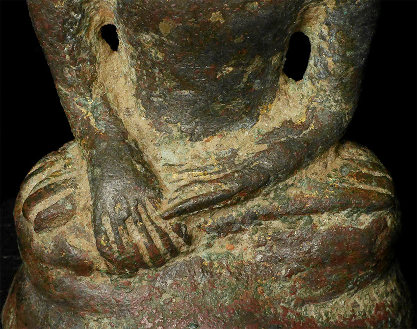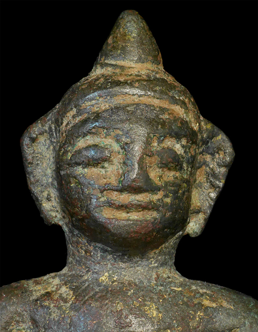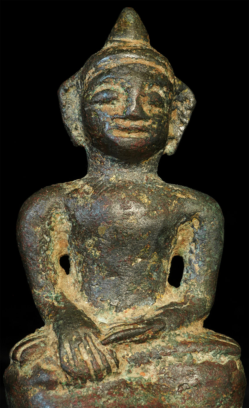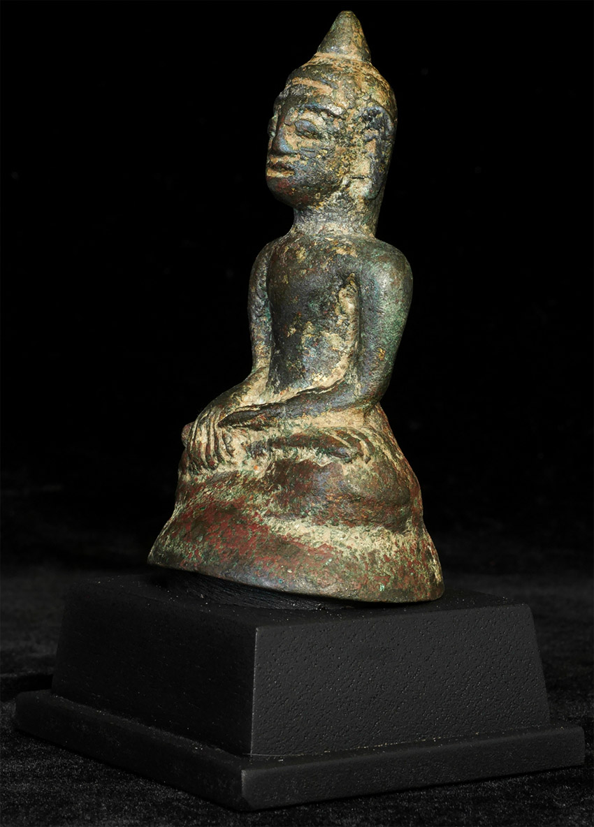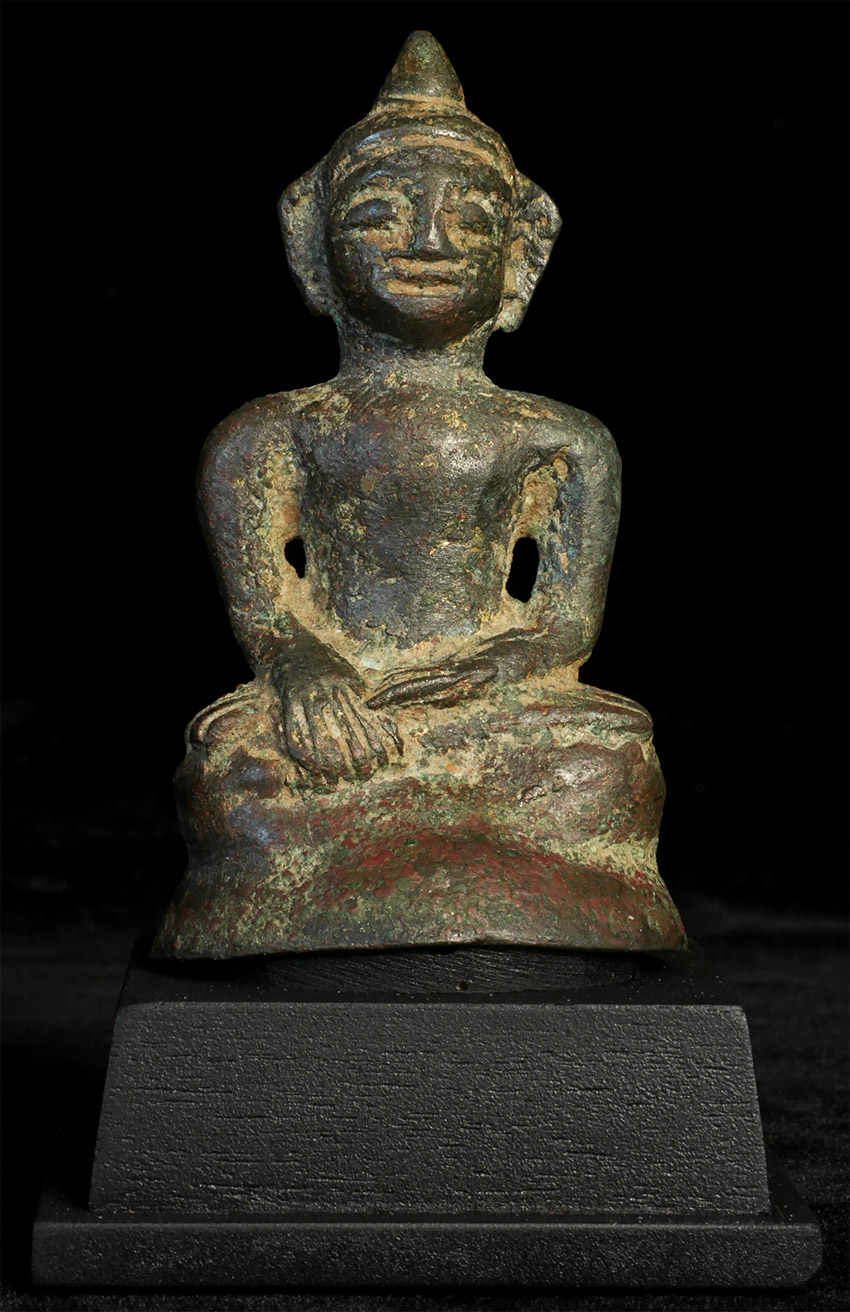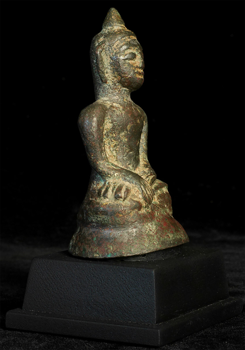 Very early (11th-12th century)Mon Buddha. Rare type unsually only encountered in books.. 3.25 inches tall, height on custom stand is 4.75 inches.