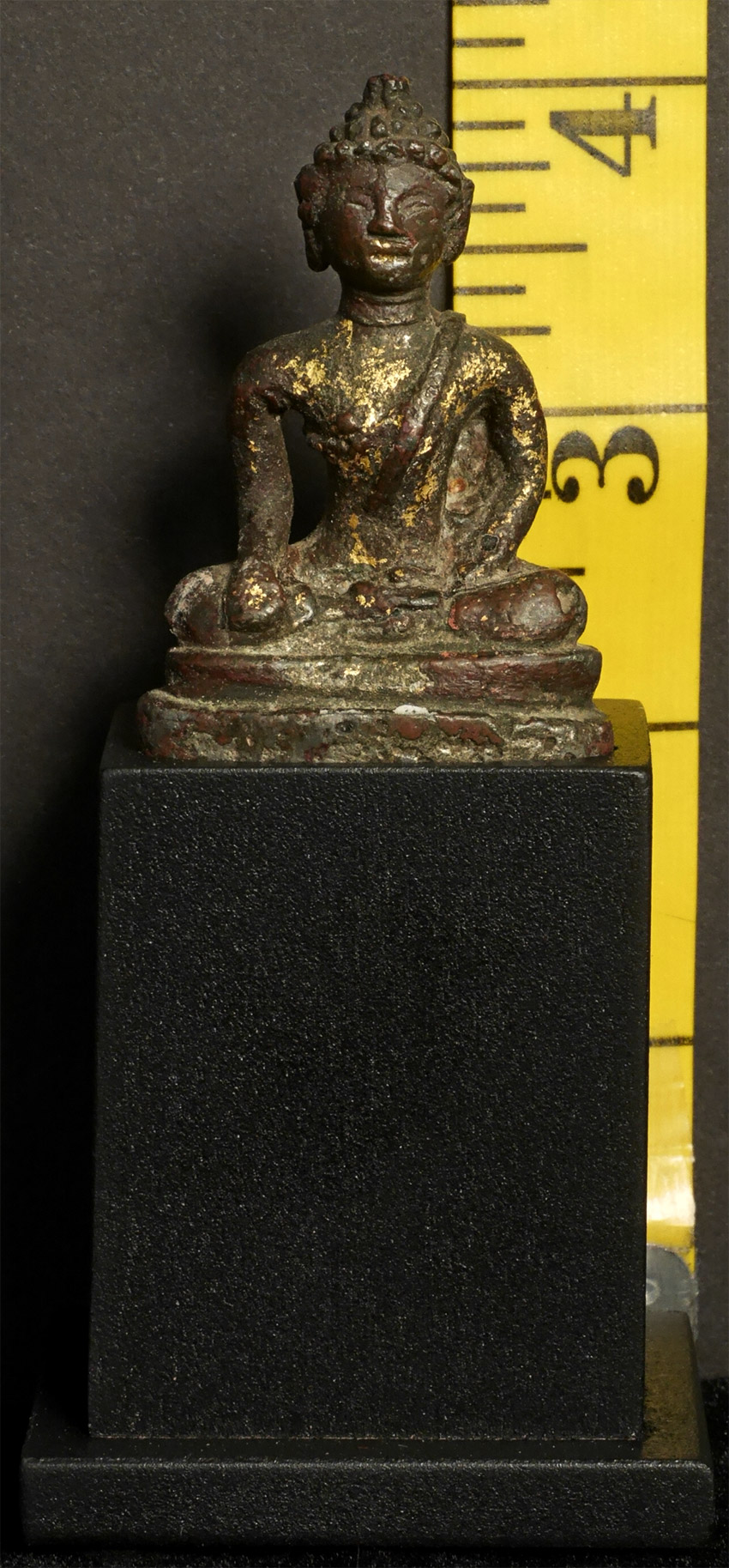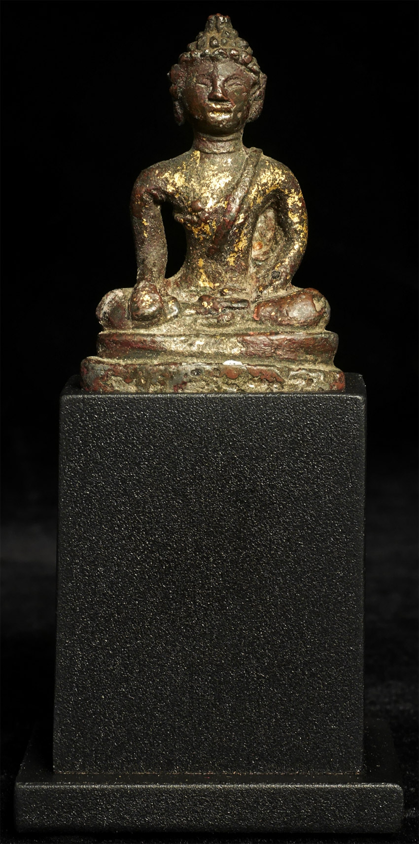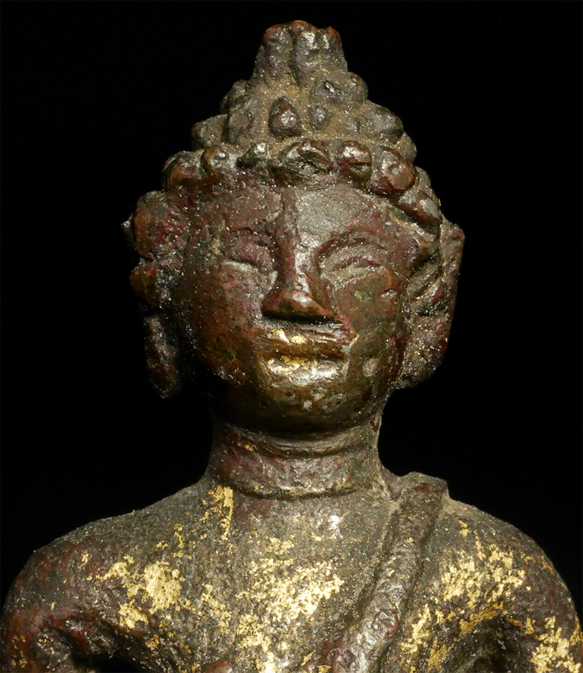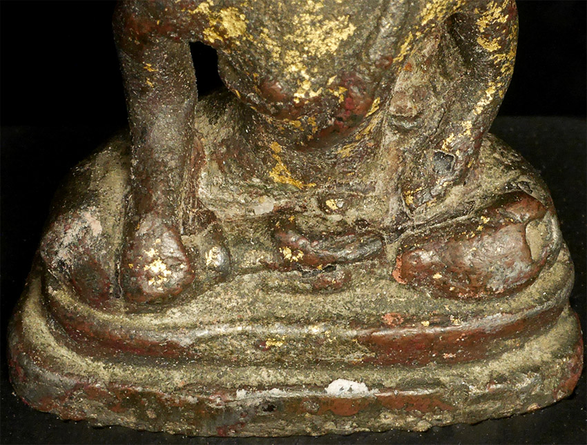 Rare early solid cast Buddha- looks to be very early- a good 700 to 800 years old. Probably SE Asian, and possibly Mon--hard to tell with some of these early ones. Measures 2 inches tall and 4 inches on its custom base
