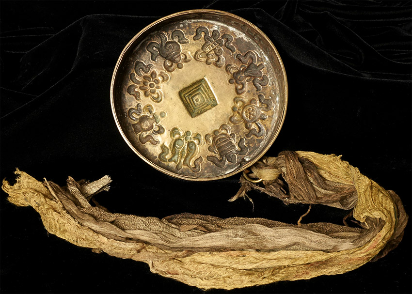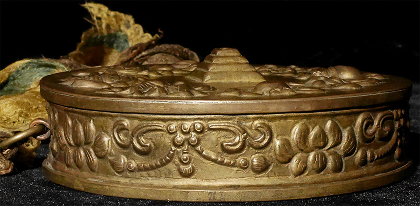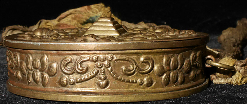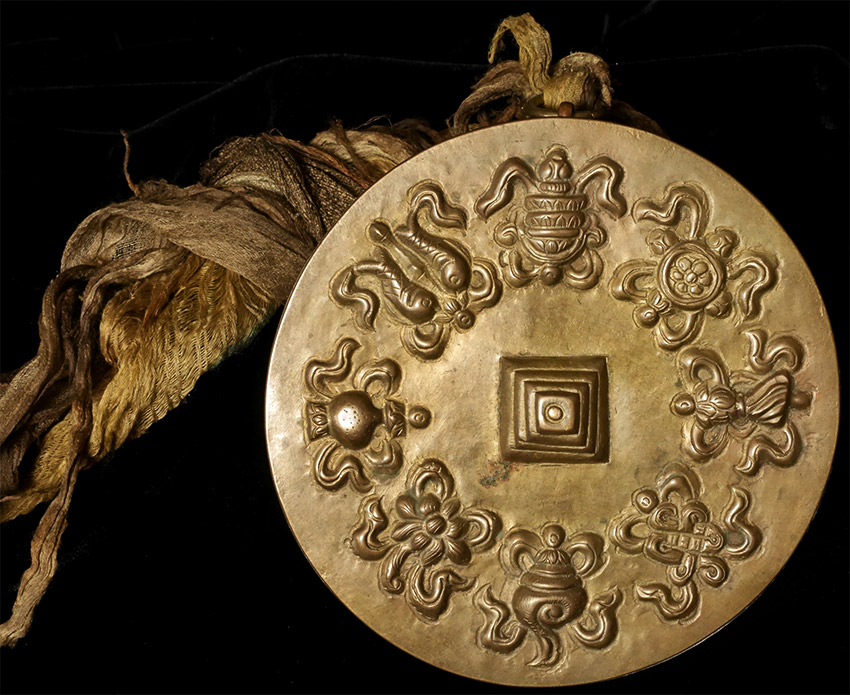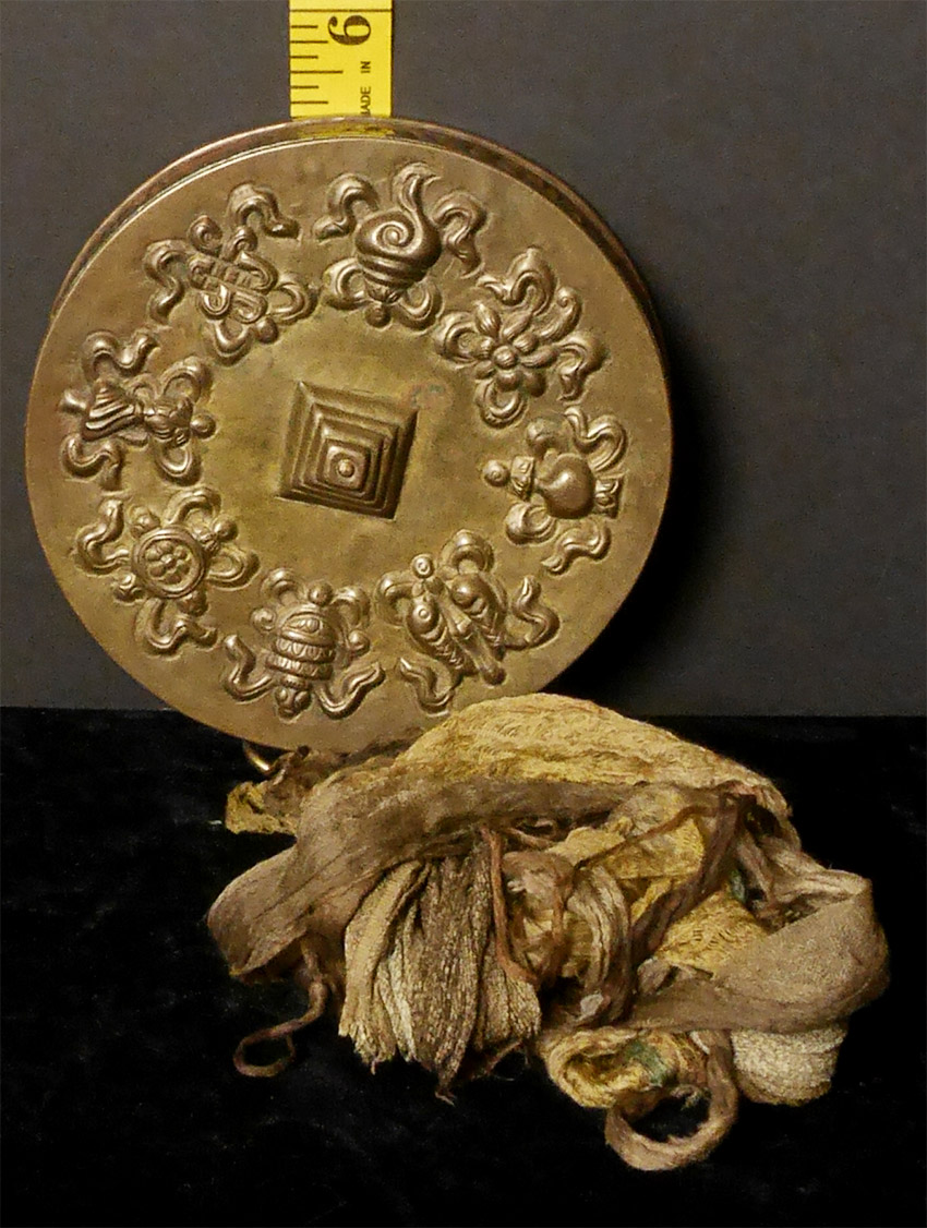 Stylized Antique Mongolian Copper Mandala. Used to meditate on the freedom of suffering for all sentient beings. Size-diameter is 5"